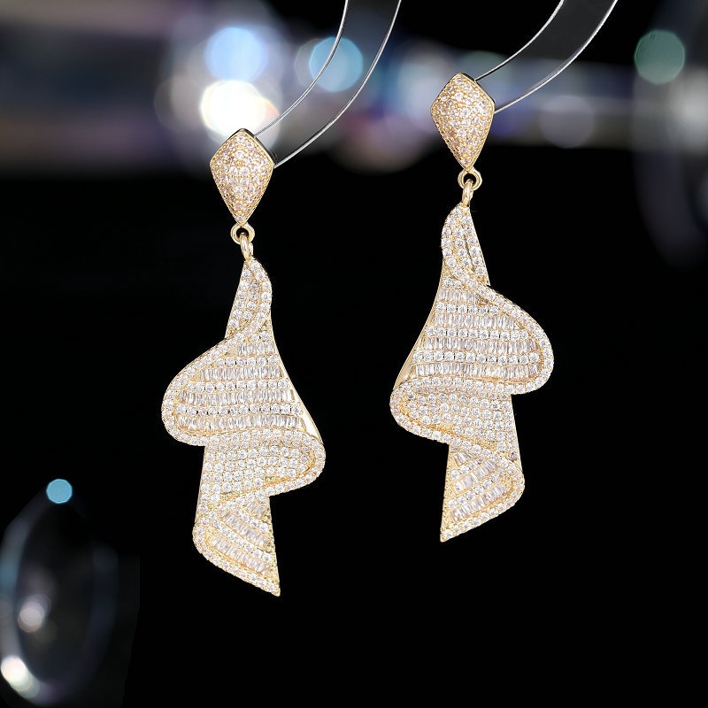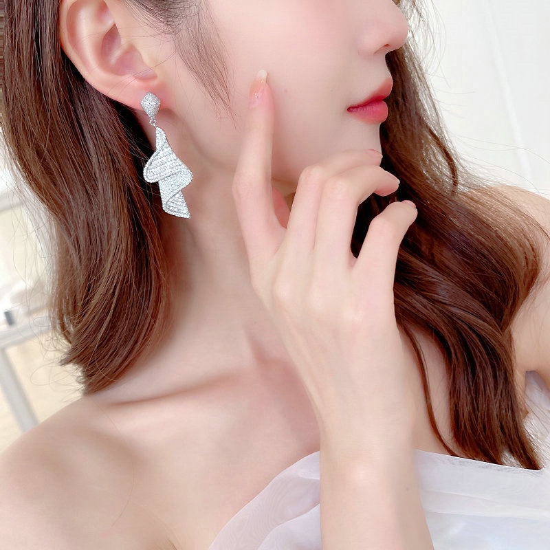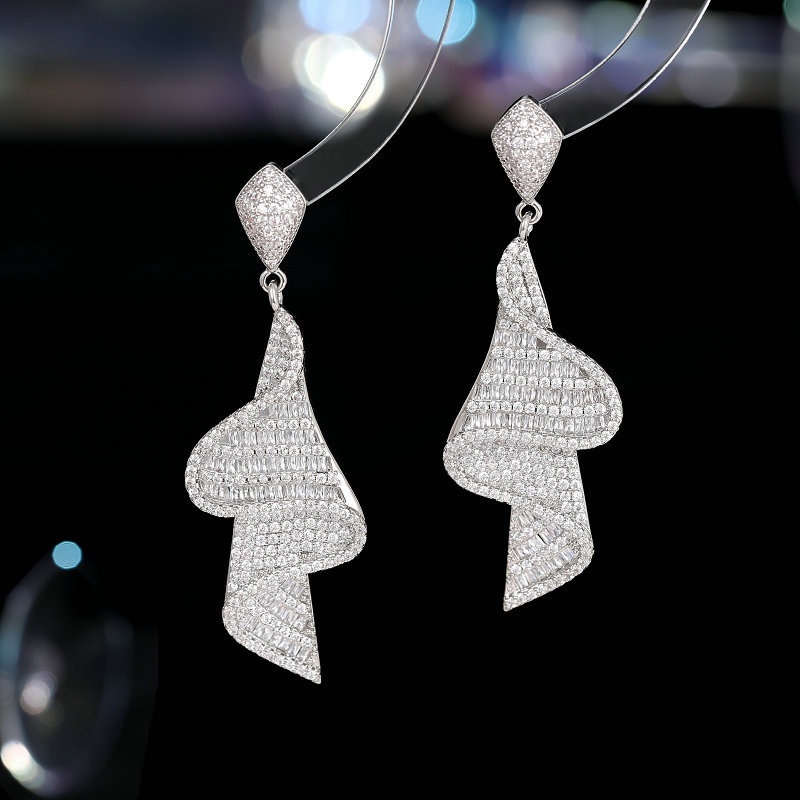 Fashion Exaggerated Luxury Heavy Earrings Zircon Skirt Ribbon Light Luxury High-end Dinner Dress Bridal Earrings
