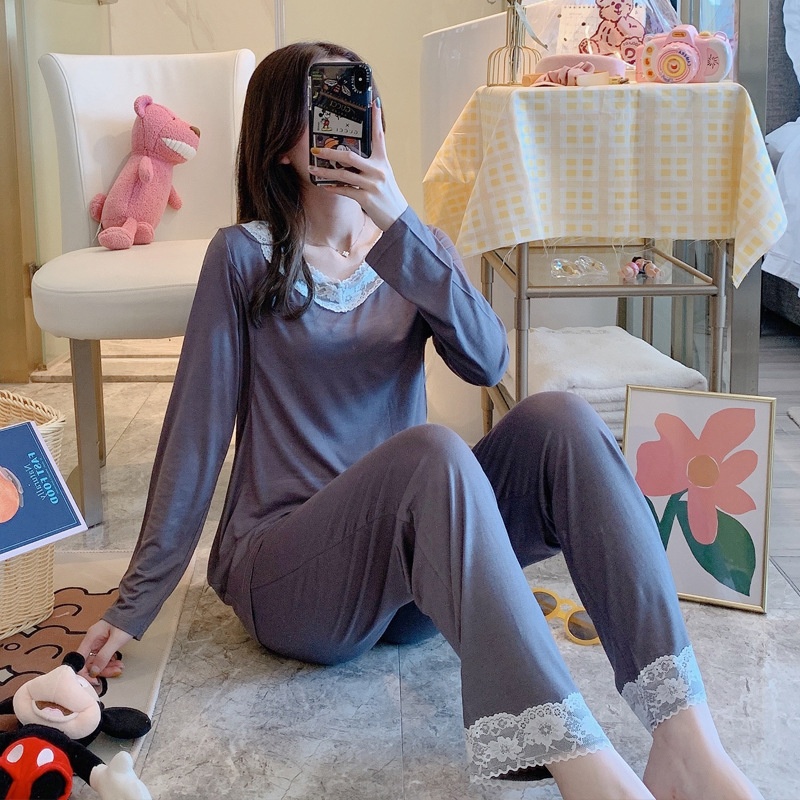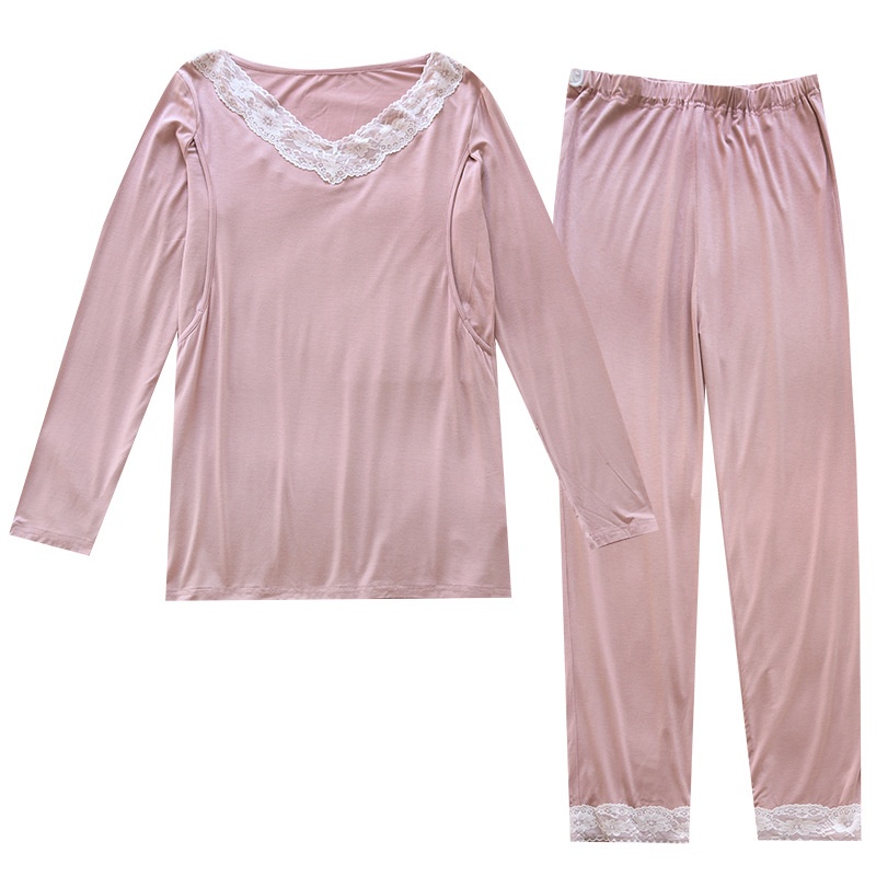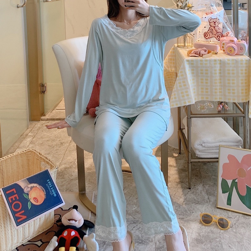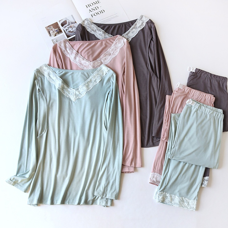 Maternity Nursing Pajamas, Confinement Clothes, Modal Home Clothes, Nursing Clothes, Summer Thin Pullover Lace Nursing Clothes Set