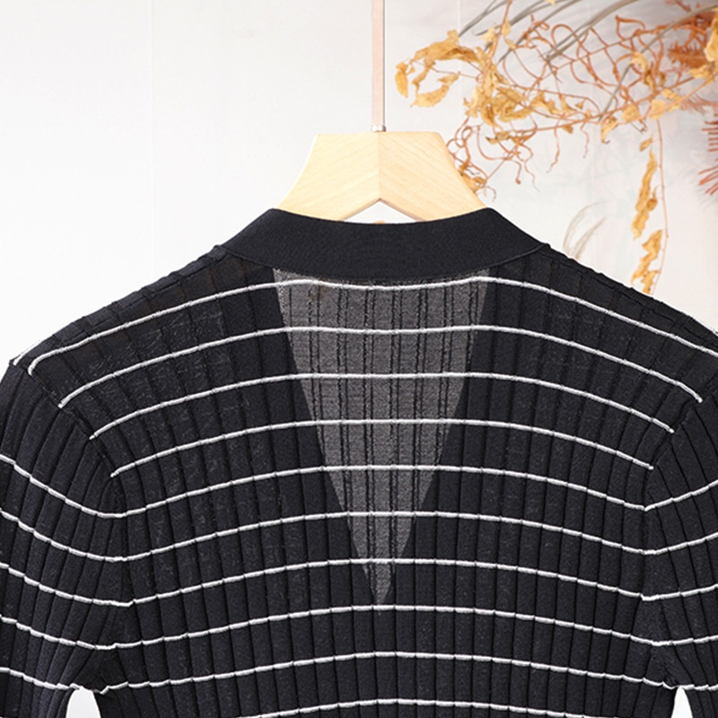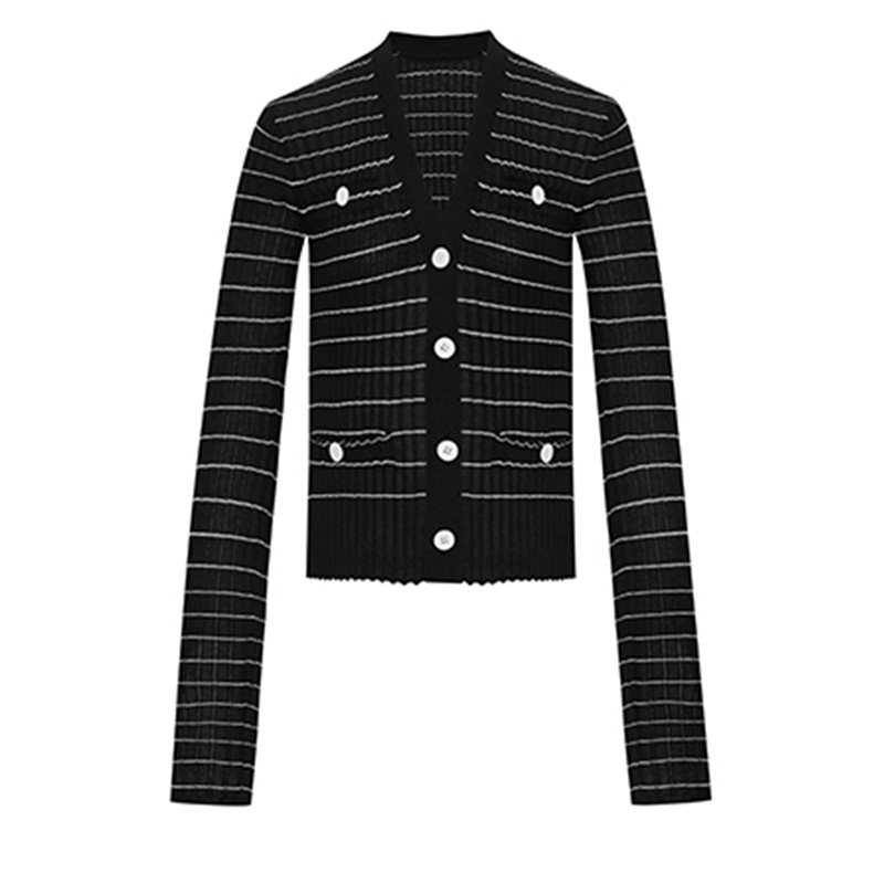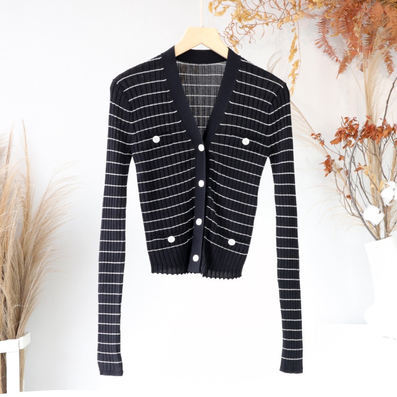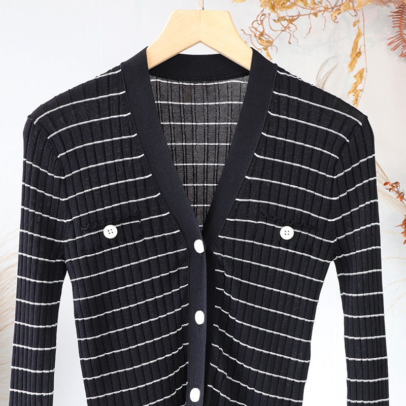 EDAutumn And Winter V-neck Chanel Style Striped Sweater Women's Long-sleeved Slim Thin Cardigan Small Jacket