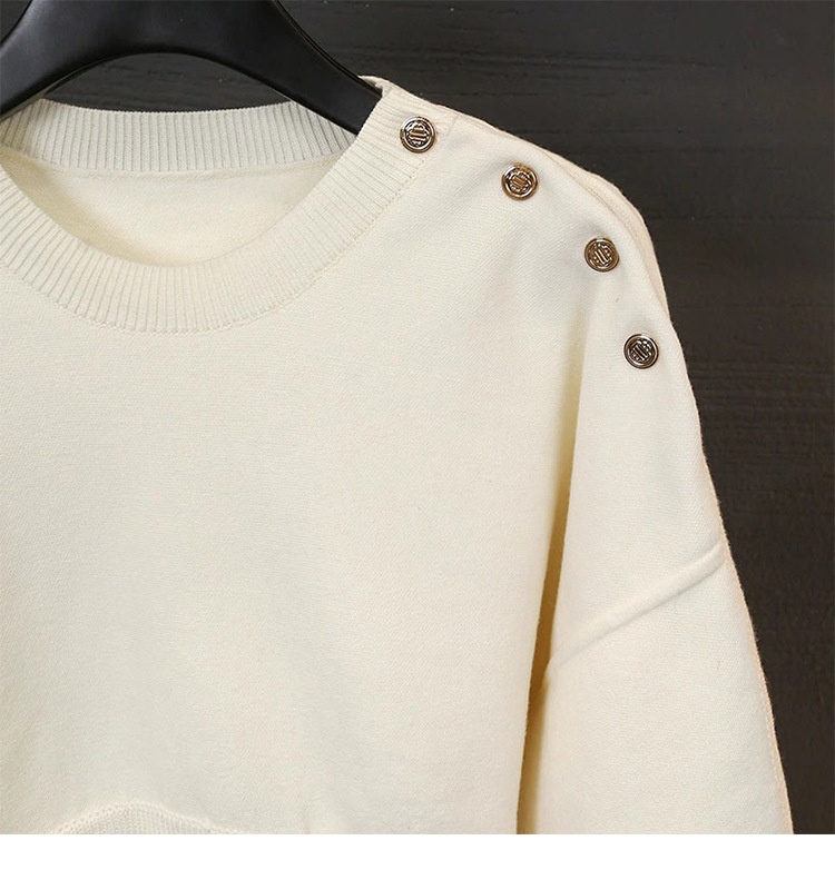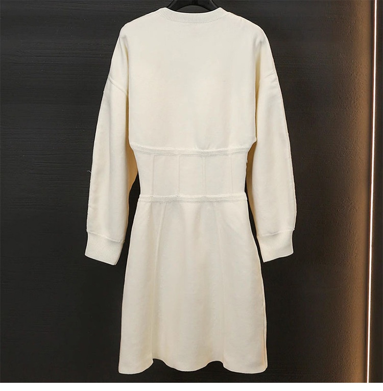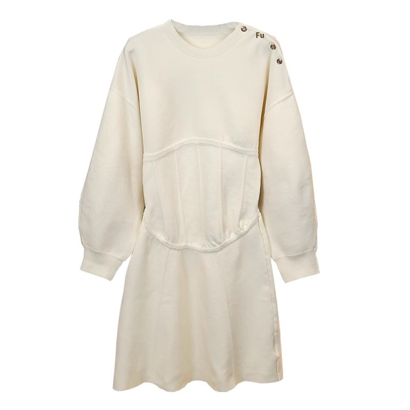 French Single MHome Autumn And Winter Waist Drop Shoulder Long Sleeve Knitted Dress Female Round Neck Shoulder Button Skirt