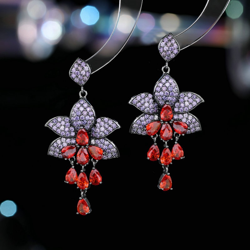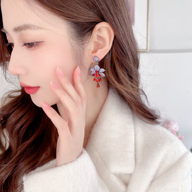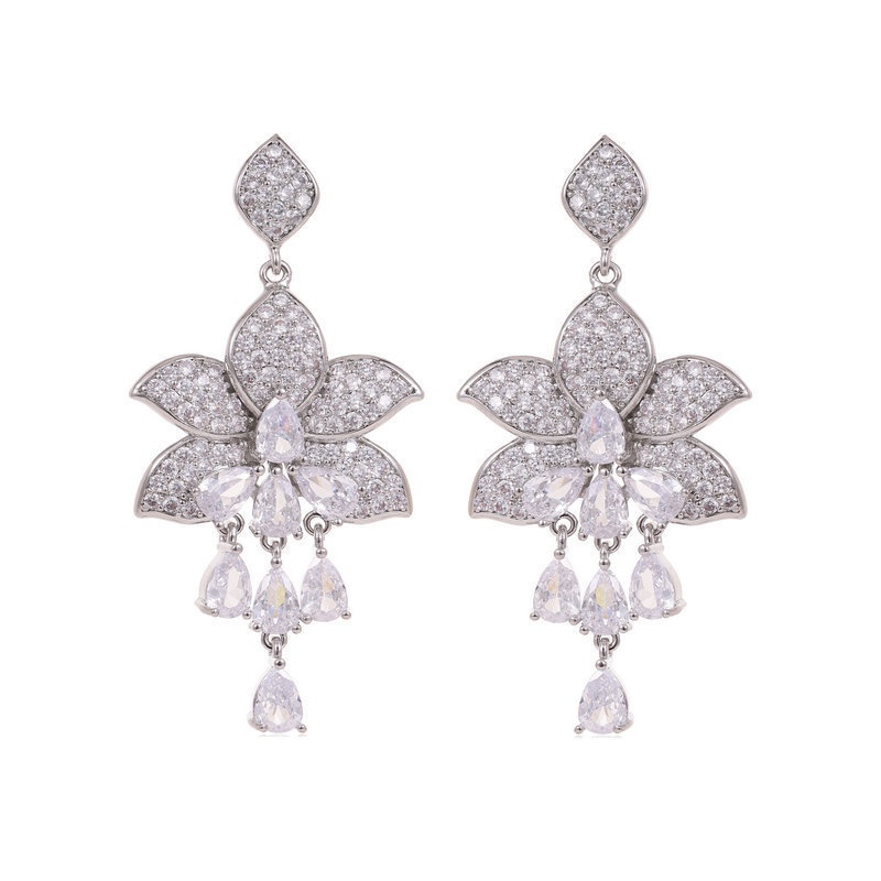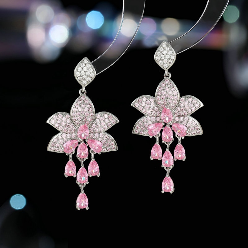 S925 Silver Needle French Light Luxury High-end Earrings Palace Style Elegant Temperament Zircon Water Drop Tassel Flower Earrings