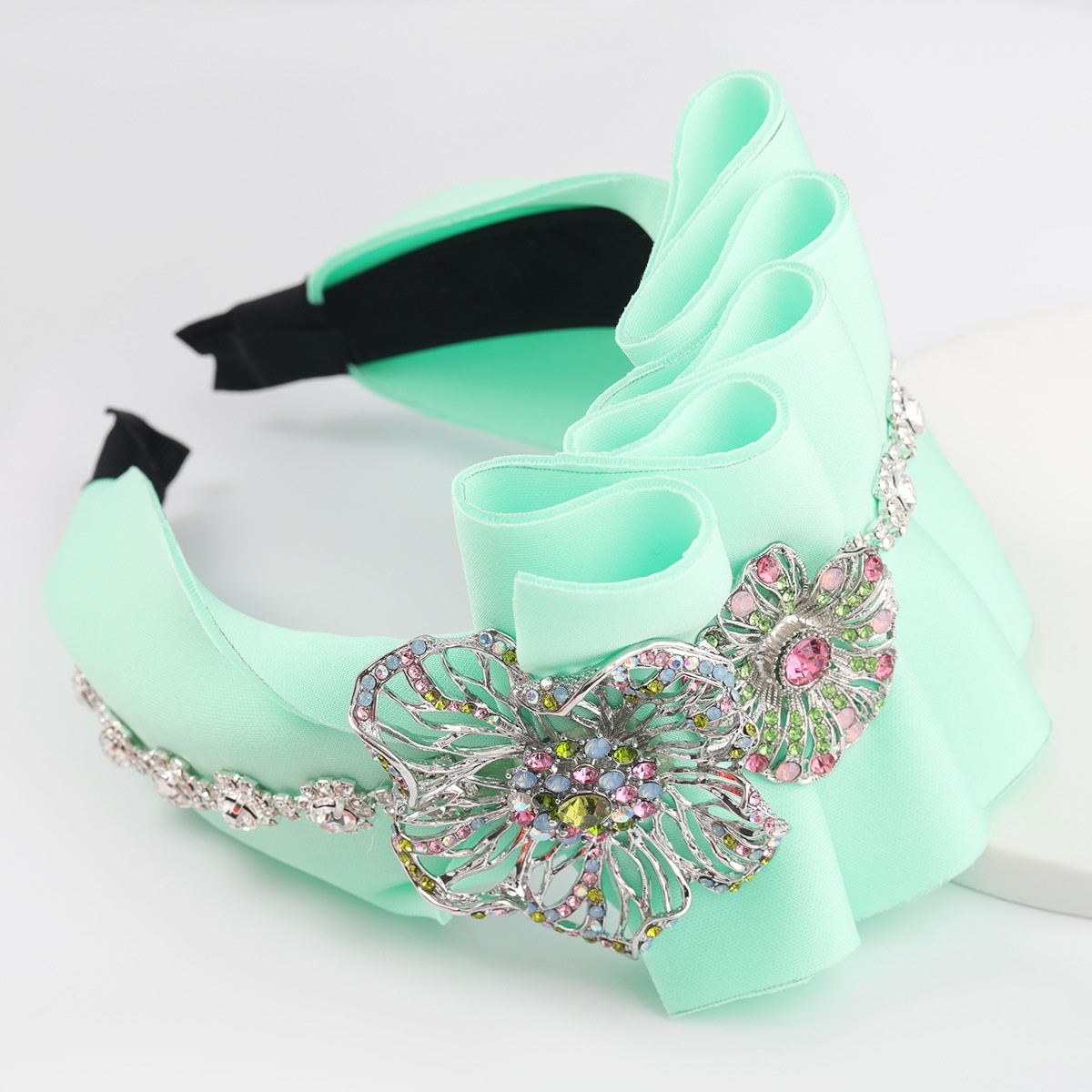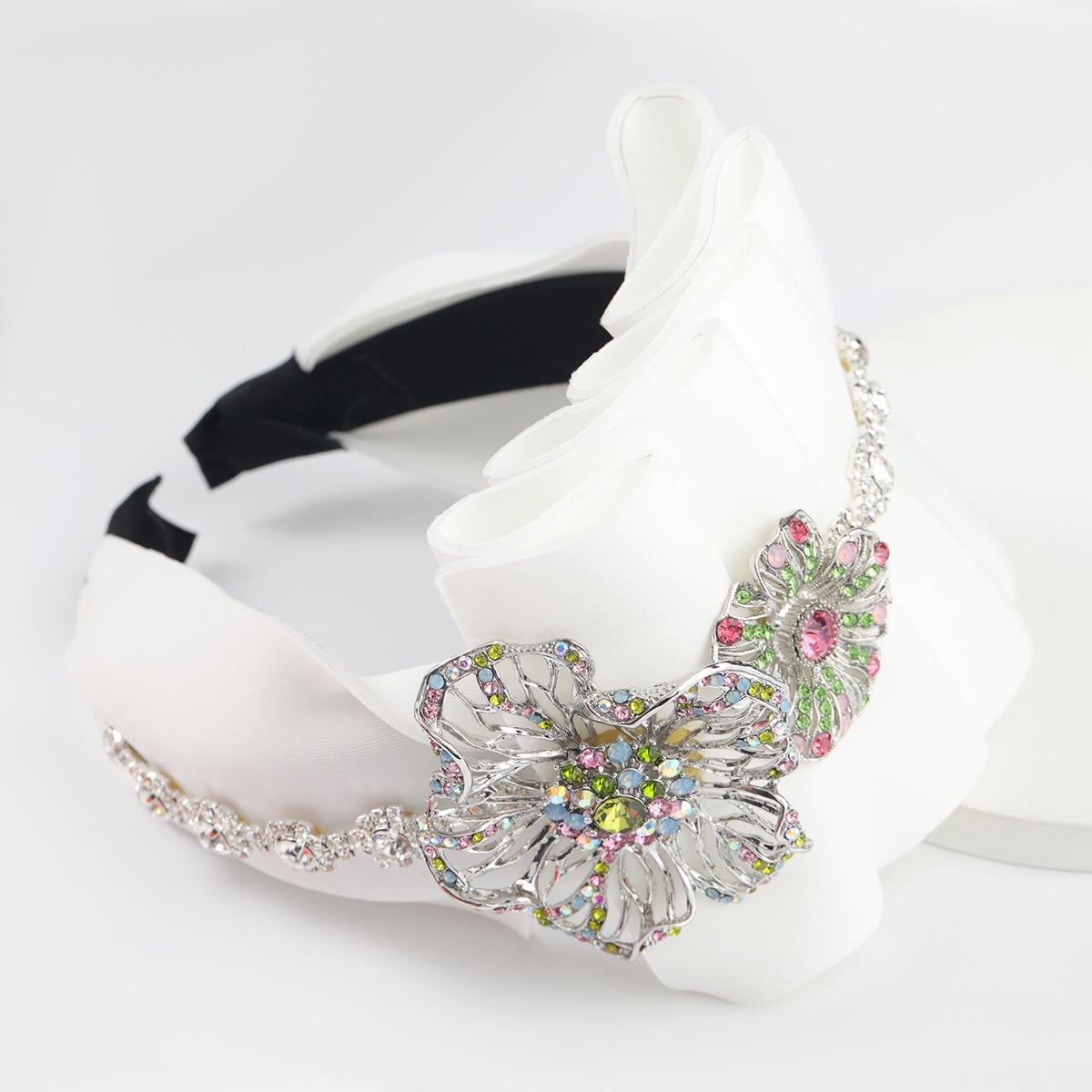 European And American Fashion Sponge Cloth Rhinestone Diamond Floral Headband Fairy Wide-brimmed Headband Net Red Party Hair Accessories