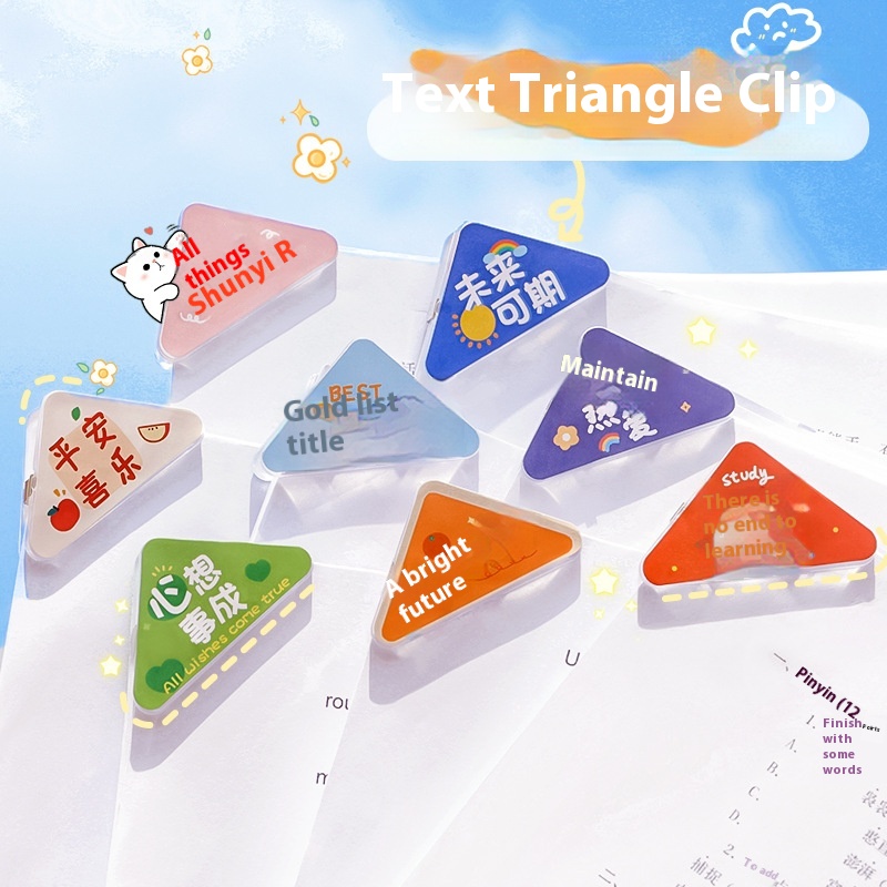 Creativepirational Text Triangle Clip Student Pp Note Clip Acrylic File Anti-roll Clip Test Paper Storage Corner Clip