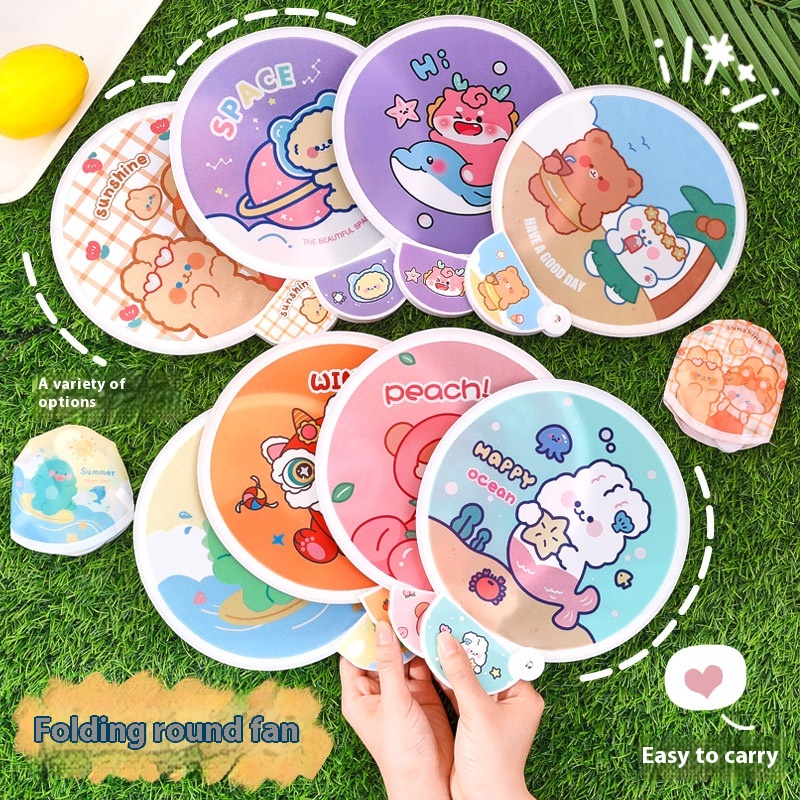 Cartoon Folding Round Fan Cute Girl Portable Small Round Fan Student Outdoor Portable Cloth Mini Fan