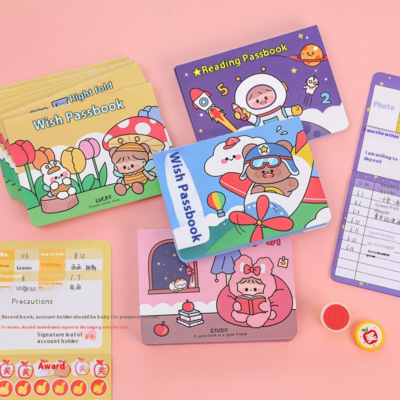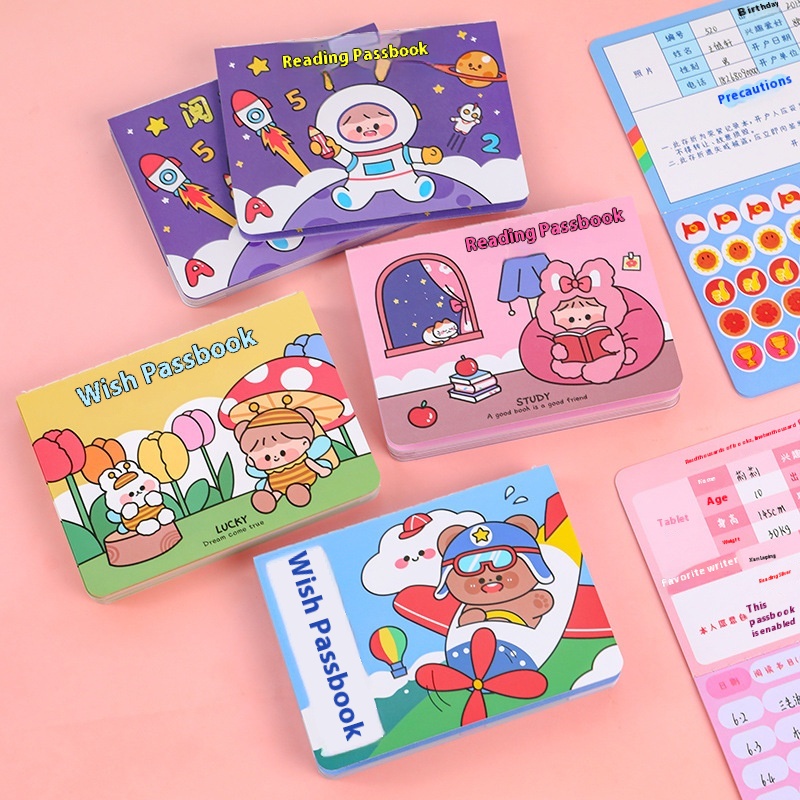 Children's Cute Passbook Primary School Students Reading Plan Punch Card Book Cartoon Exchange Points Reward Card