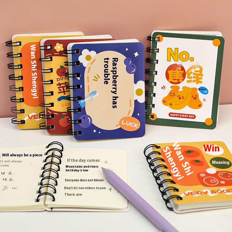 Hangsu Cute Text Side Flip Coil Book Student Word Handbook Small Book Pocket Mini A7 Notepad
