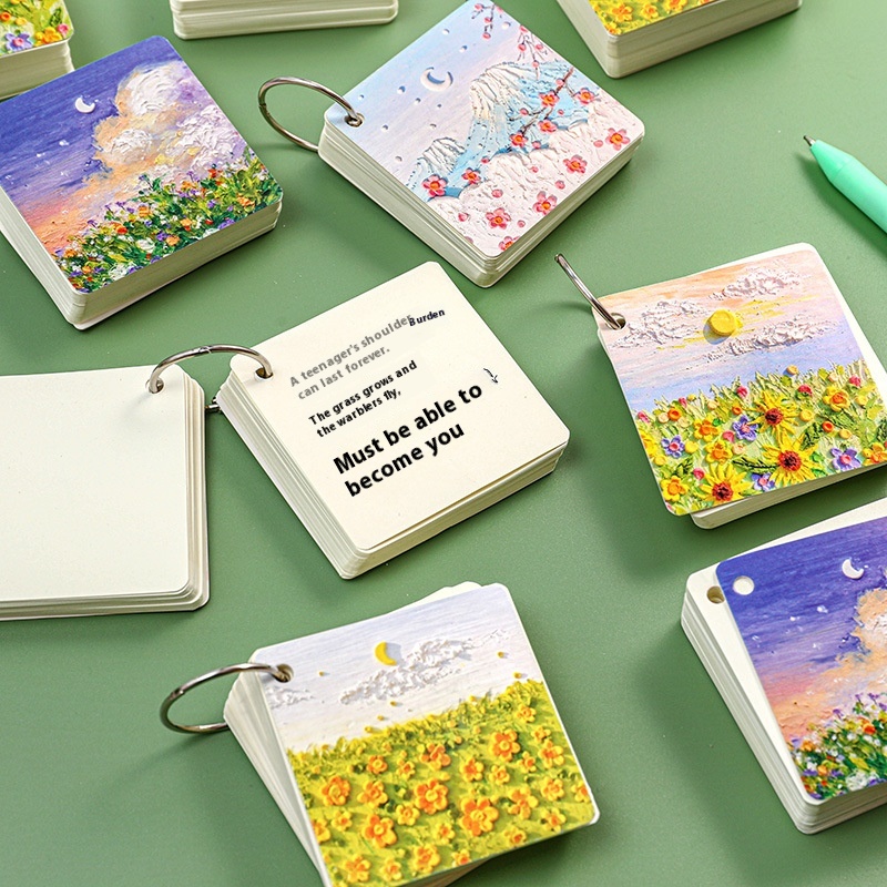 Oil Painting Landscape Iron Ring Book Student Blank Loose-leaf English Word Book Portable Message Note Book Note Book