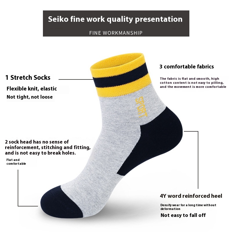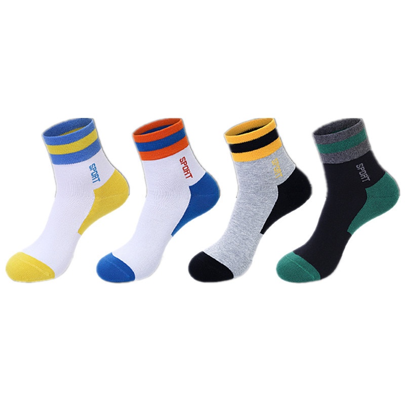 Socks Men's Pure Cotton Mid- Tube Socks Autumn Thickened Towel Bottom Absorbent Sweat- Deodorant Boys Sports Basketball Socks Zhuji