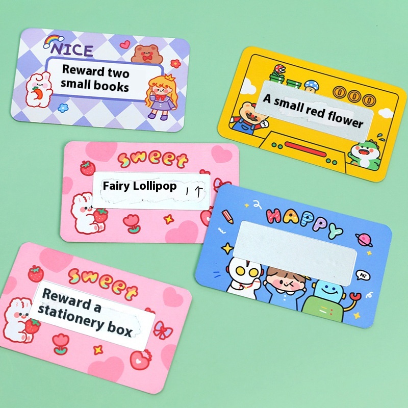 Cartoon Scratch Card Student Class Meeting Handwritten Interactive Scratch Card Kindergarten Reward Lucky Draw Card Greeting Card