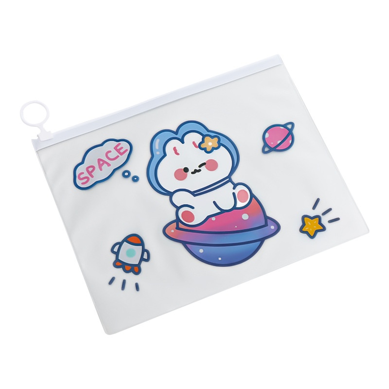 Cartoon Astronaut File Bag Spaceman Zipper Stationery Storage Bag Student Transparent Waterproof Test Paper Information Bag
