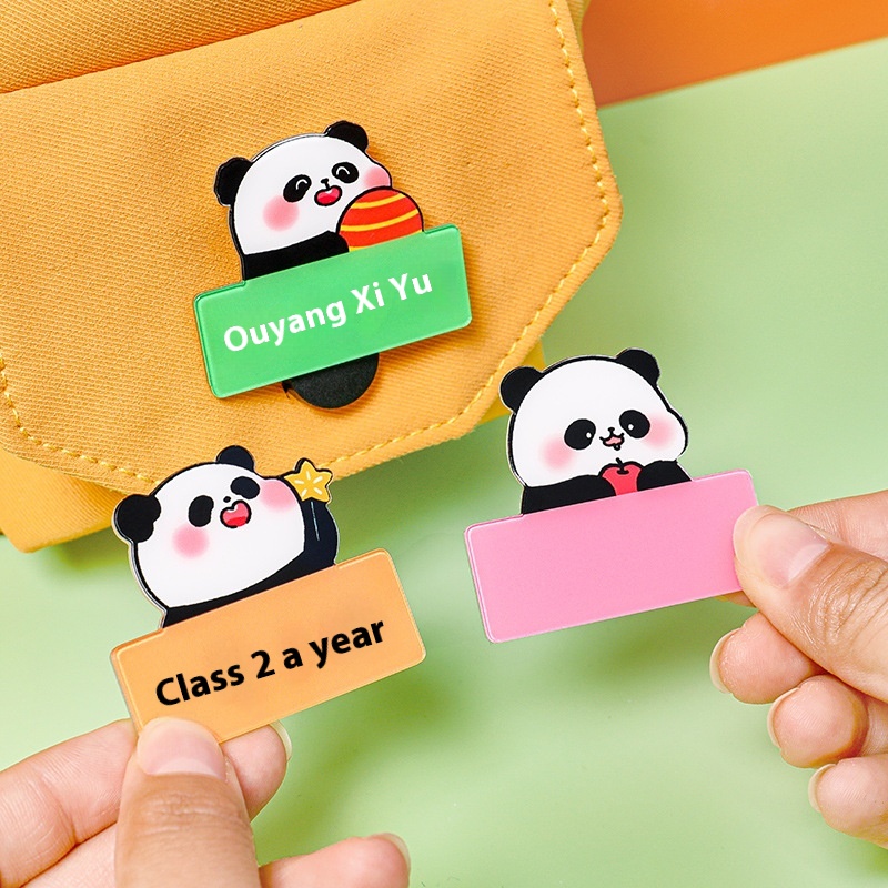 Cartoon Panda Name Badge Children's Cute Badge Decoration Gift Primary School Students Acrylic DIYHandwritten Brooch