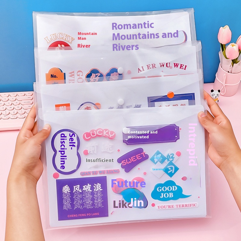 Creative Pp Transparentpirational File Bag Student A4 Snap Test Paper File Storage Bag Exam Information File Bag