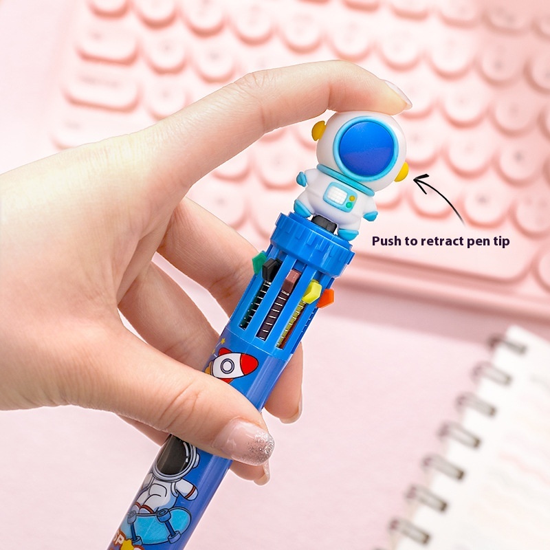 Cartoon Astronaut Ten-color Ballpoint Pen Student Creative Astronaut10-color Pen Cute Press Handbook Multi-color Pen