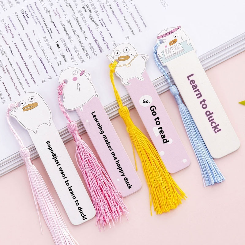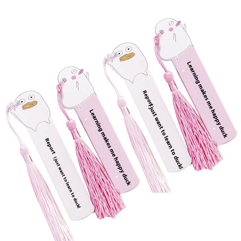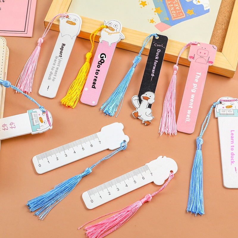 Korean Creative Cartoonpirational Duck Wooden Ruler Small Fresh Cute Tassel Pendant Wooden Bookmark Flip Book Clip