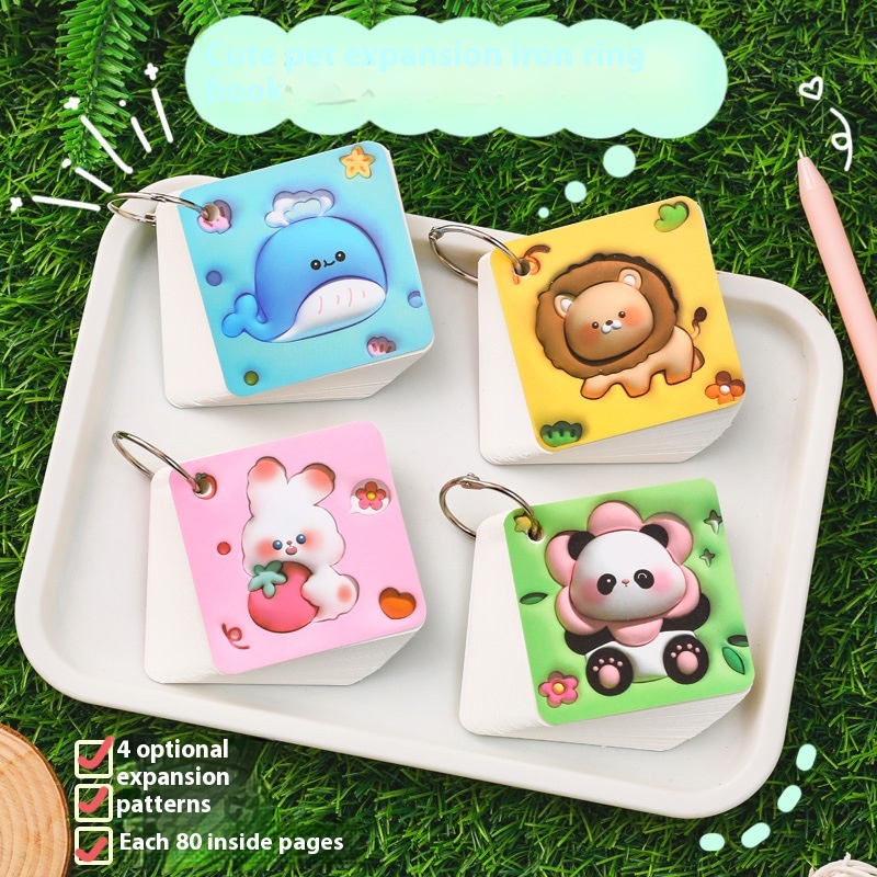 Cartoon Cute Pet Iron Ring Book Creative3 DThree-dimensional Painting Loose-leaf Notebook Cute Pocket Handbook Stationery Prize