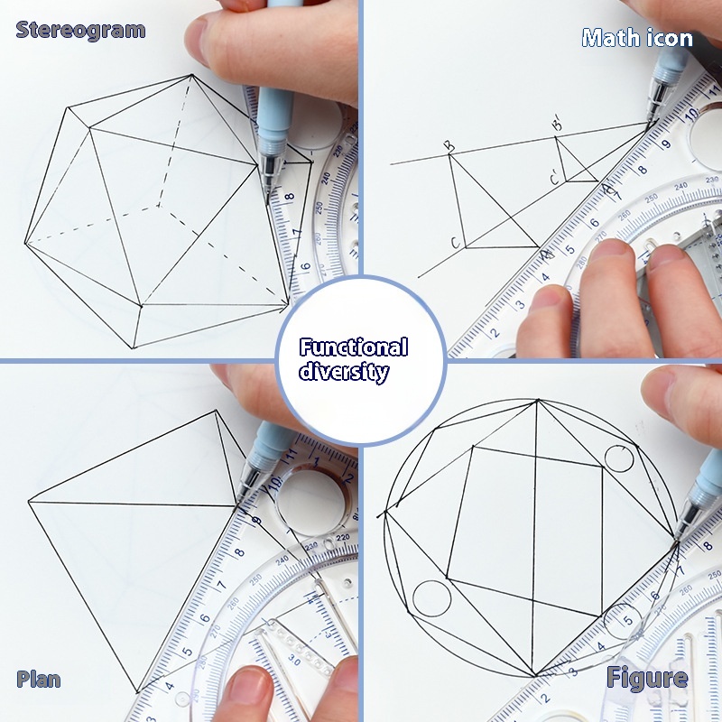 Multifunctional Drawing Ruler Primary And Secondary School Students Mathematical Function Graphic Ruler Geometry Drawing Template Ruler Protractor Tool