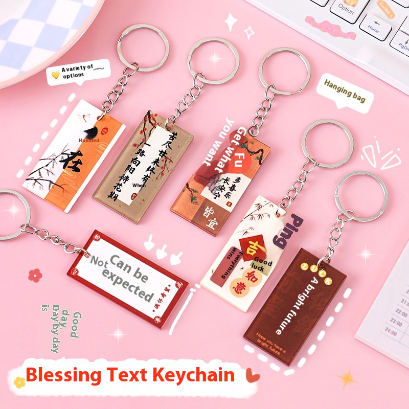 Chinese Style Double-sided Text Keychainpirational Acrylic Tag Small Pendant Middle School Entrance Examination College Entrance Examination Reward Small Gift