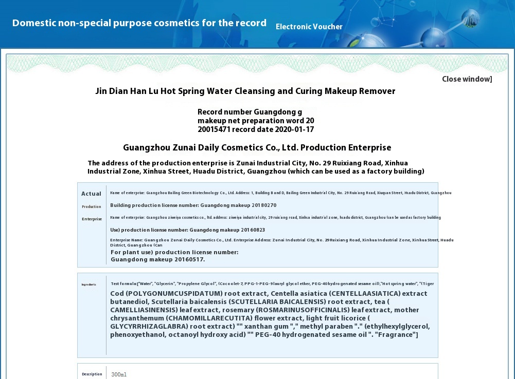 Jindian Hanlu Hot Spring Water Purifying Care Makeup Remover300 Eyeshadow Eyeliner Lipstick Makeup Blush Gentle J3803