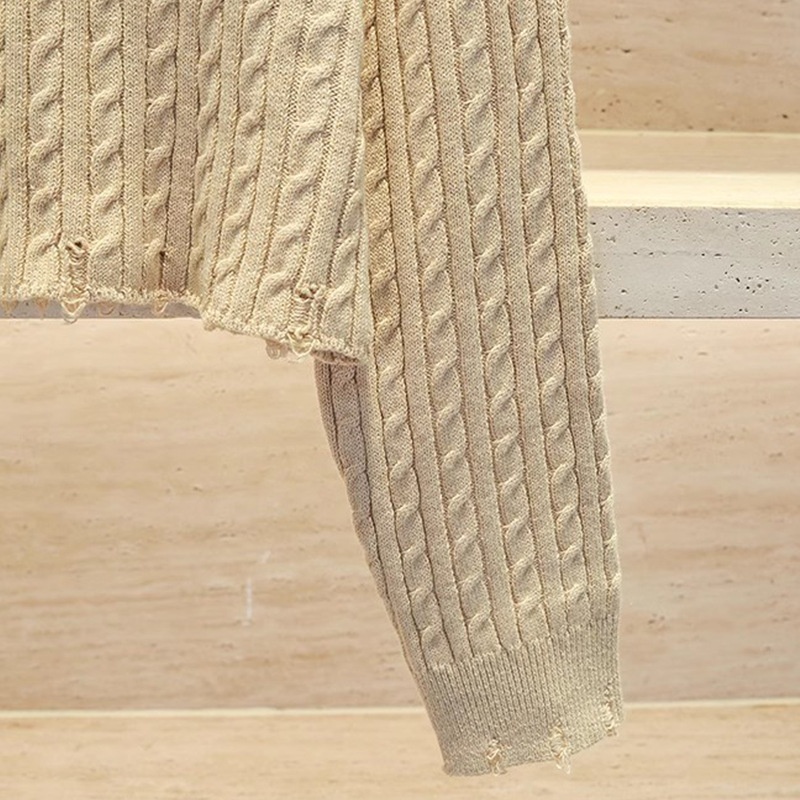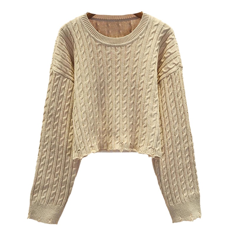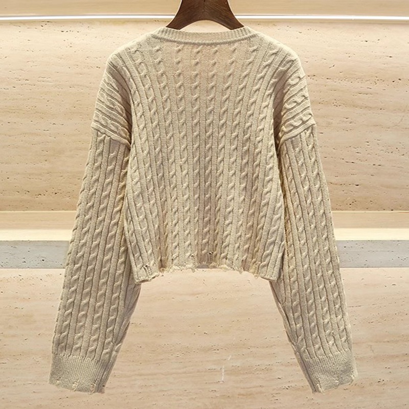 French Single SHome Autumn And Winter Hole Short Knit Sweater Women's Round Neck Short Small Drop Shoulder Sweater