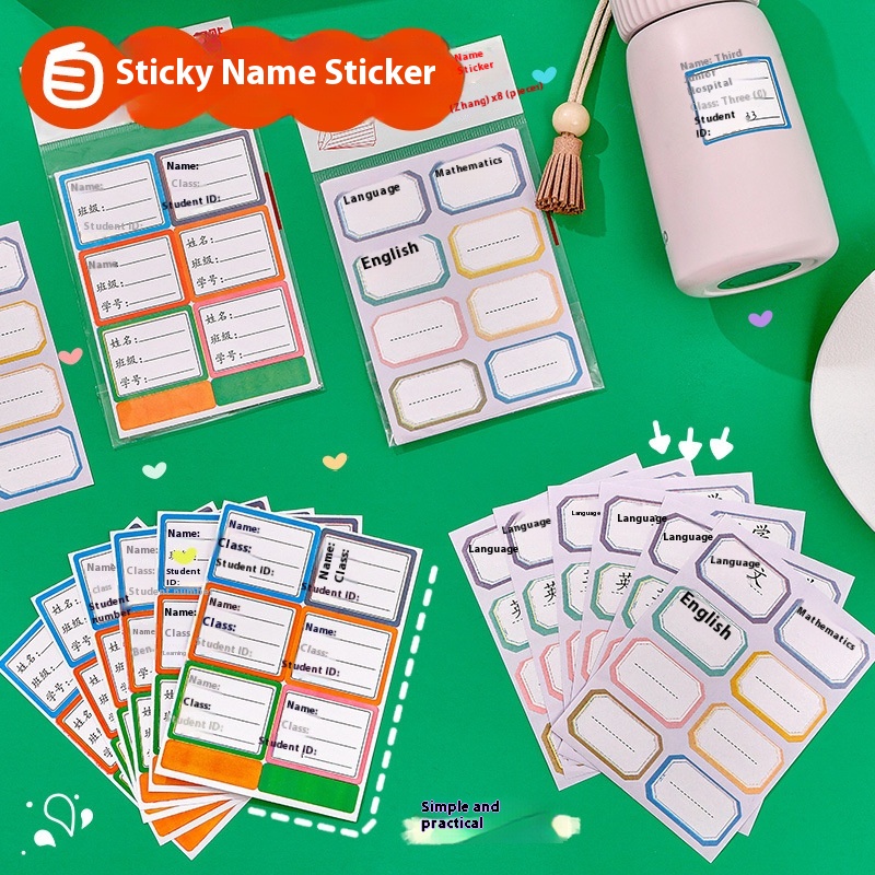 Simple Handwritten Waterproof Name Stickers For Primary School Students Self-adhesive Color Notes Labels Self-adhesive Classificationtructions