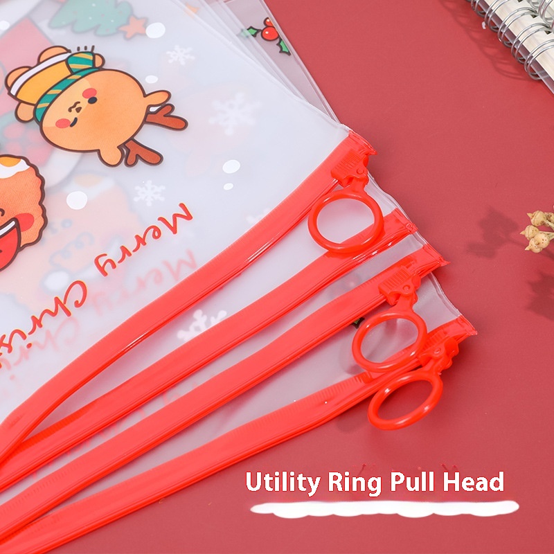 Cartoon Christmas Ring File Bag Student Girl Heart Zipper Bag Multifunctional Transparent Stationery Storage File Bag