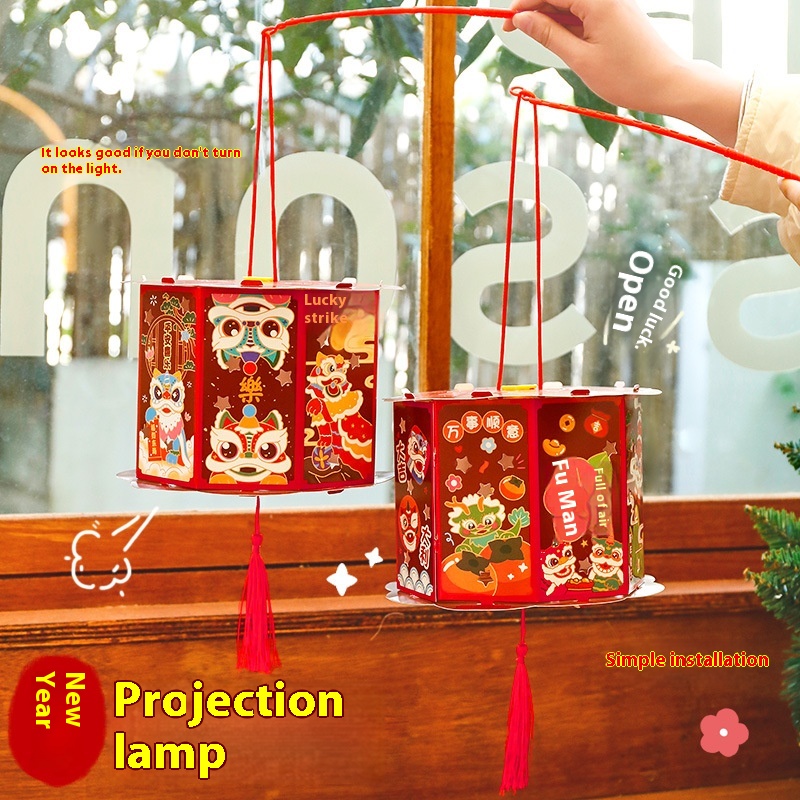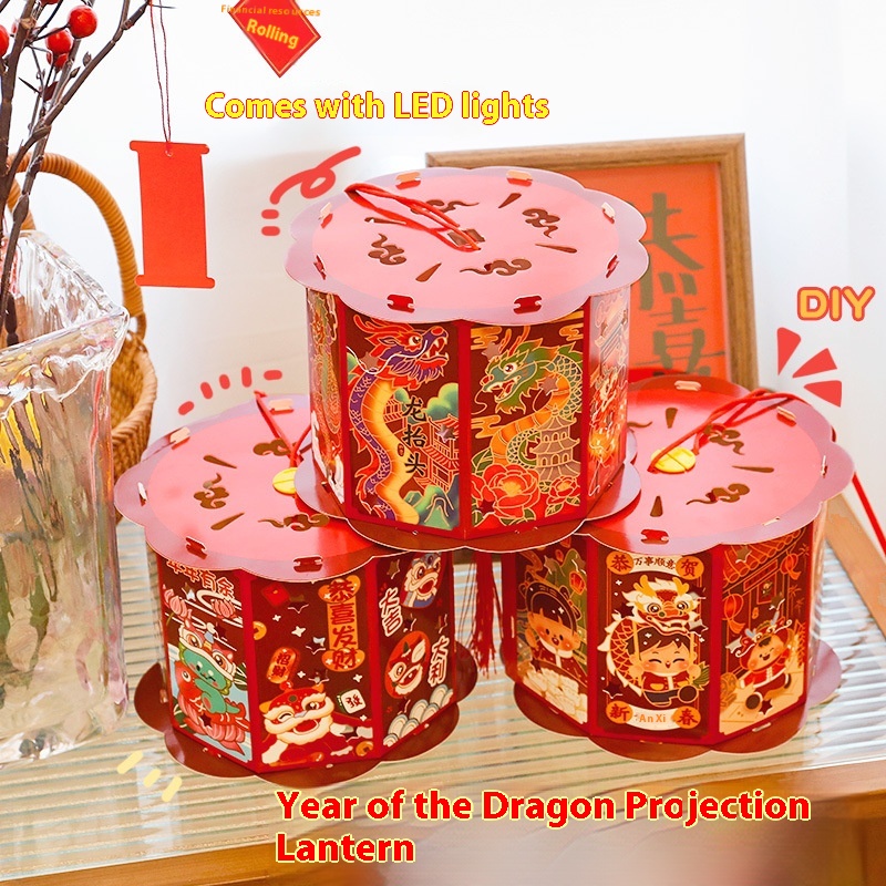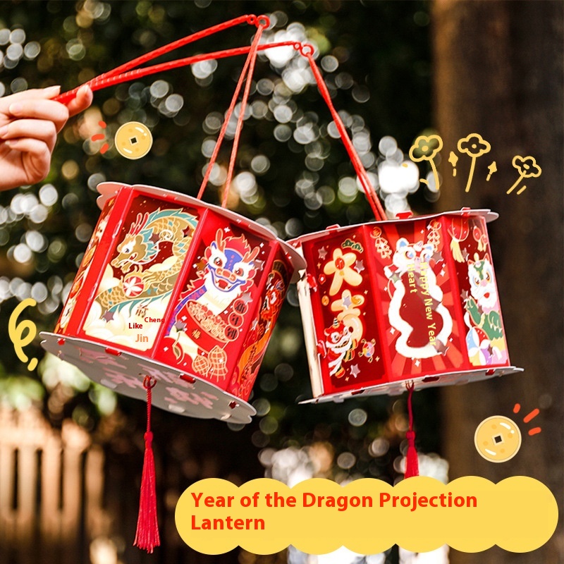 Creative Dragon Year Projection Revolving Lantern Children DIYHandmade Lanterns Cute Portable Lanterns Reward Small Gifts