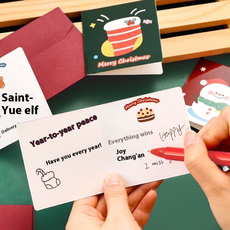 Cartoon Christmas Envelope Greeting Card Student Christmas Blessing Small Card Cute Folding Thanksgiving Message Greeting Card
