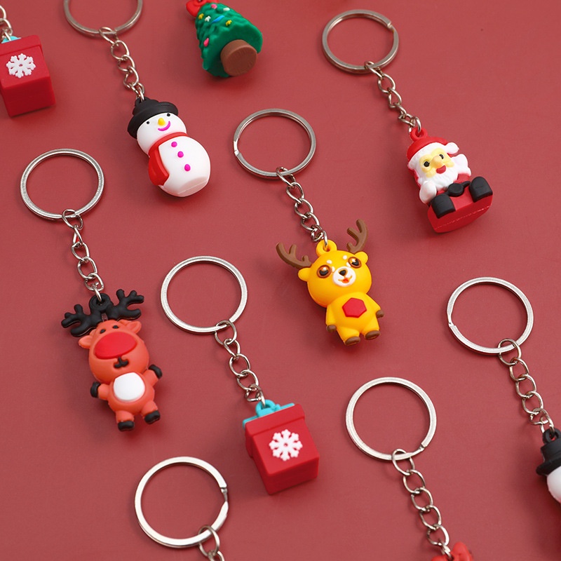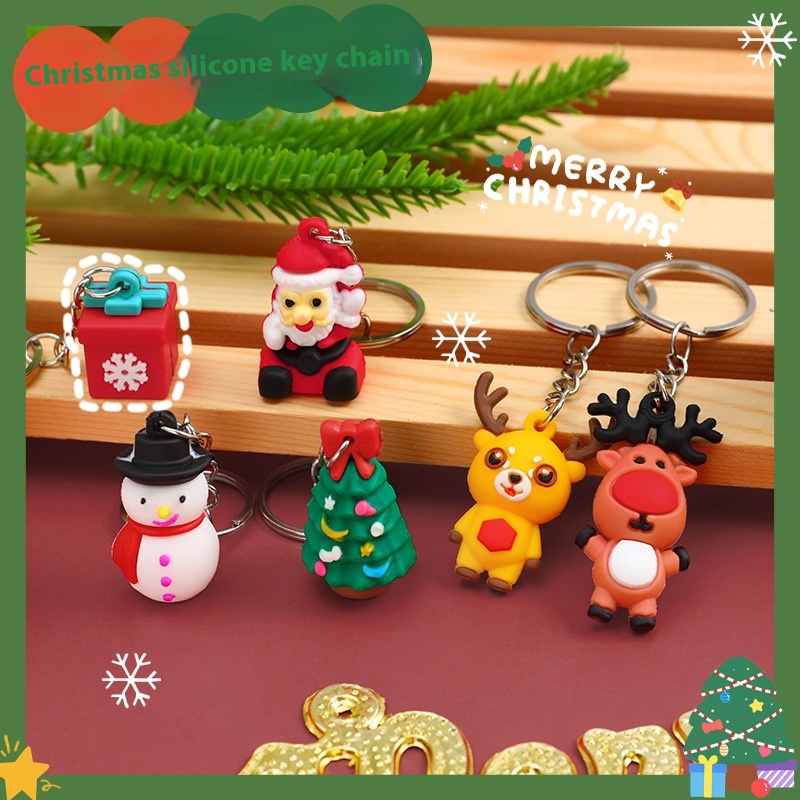 Cartoon Santa Claus Keychain Christmas Elk Snowman Keychain Silicone Cute Doll Key Ring Ornament