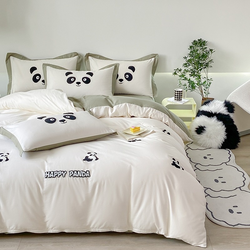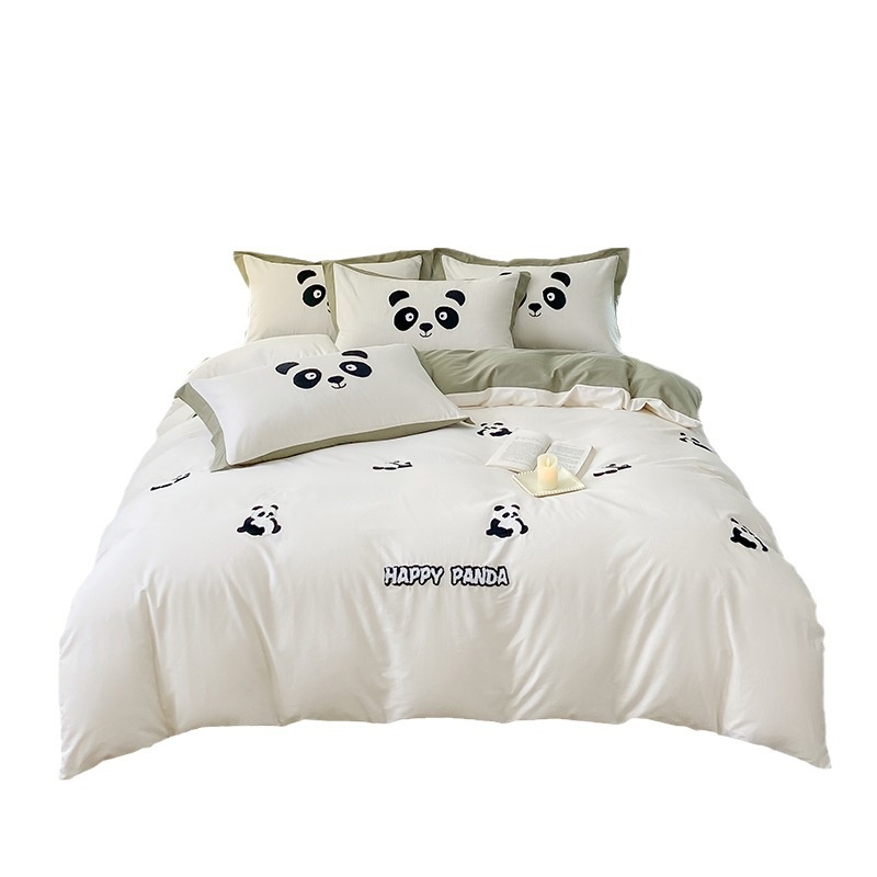 Cotton Towel Embroidery Embroidery Pure Cotton Twill Cotton Four-piece Set Solid Color Bedding Sheets One Piece Dery