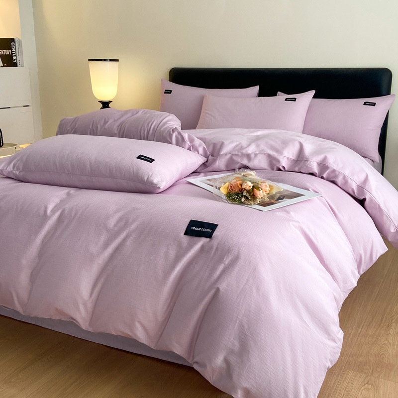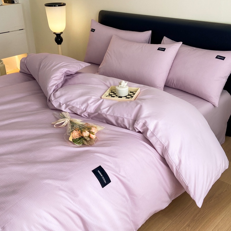 Simple And Elegant Cotton Jacquard Low-key Luxury Four-piece Set Pure Cotton Solid Color Bed Single Color Bed Sheet Bed Bag Can Be Sent On Behalf Of
