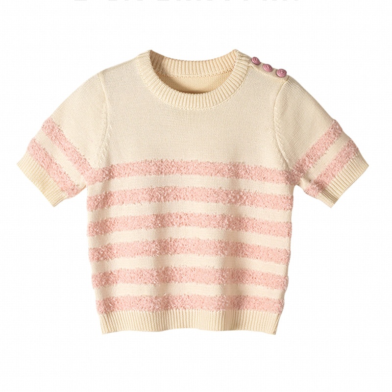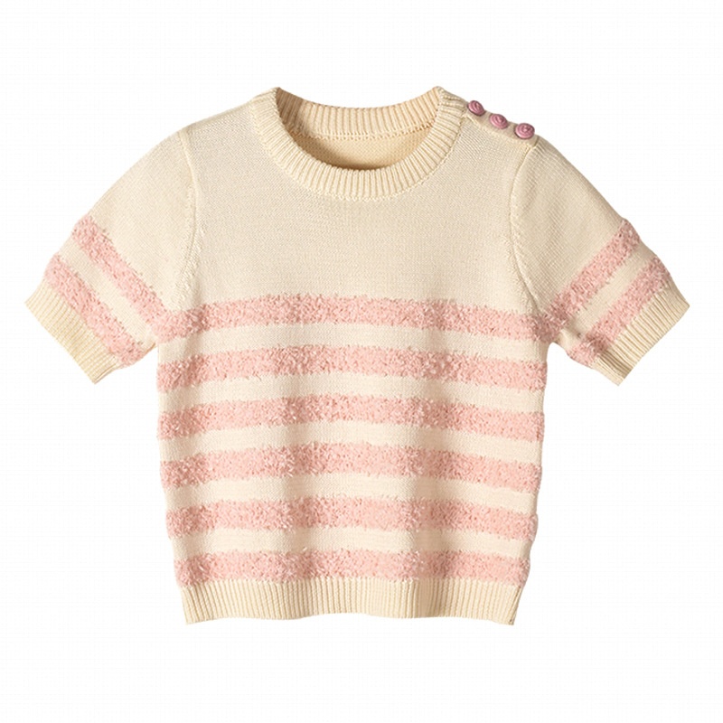 Internet Celebrity Early Autumn Striped Sweater Women's Round Neck Short Sleeve Simple Classic Sweater T-shirt