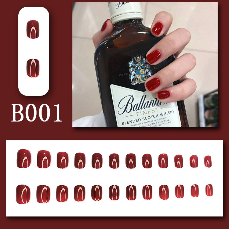 Wearable Nail Art Nail Pieces Fake Nail Stickers Removable Dark Red Solid Color Nail Stickers