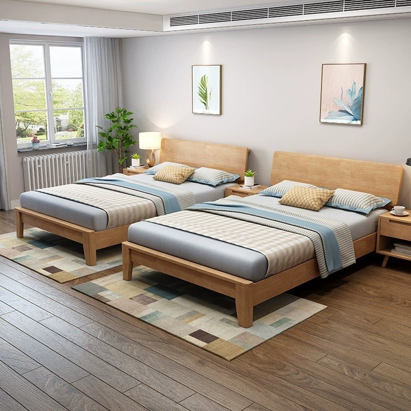Modern Simple Solid Wood Bed1.8 Meters Solid Wood1.5 Bed Frame Bedroom Double Bed1.2 Single Economical Nordic Bed