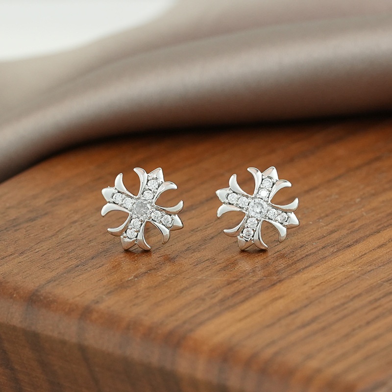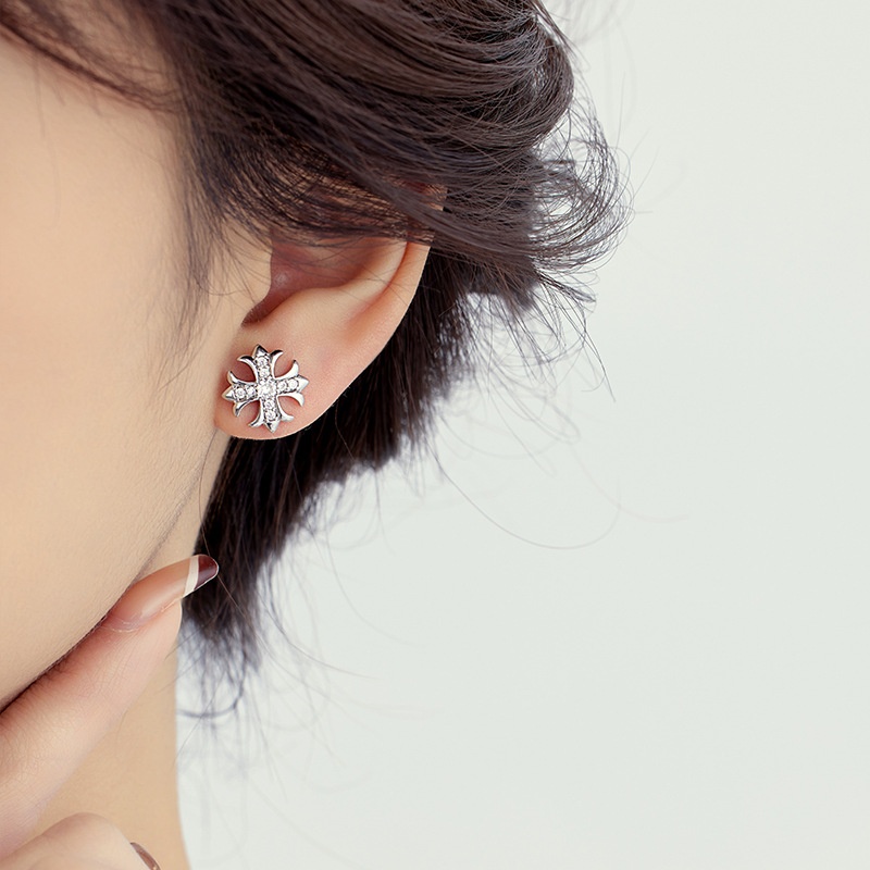 Cross Micro-inlaid Zircon Gold Earrings Small Exquisite Fashion Earrings Retro Temperament All-match Earrings For Women