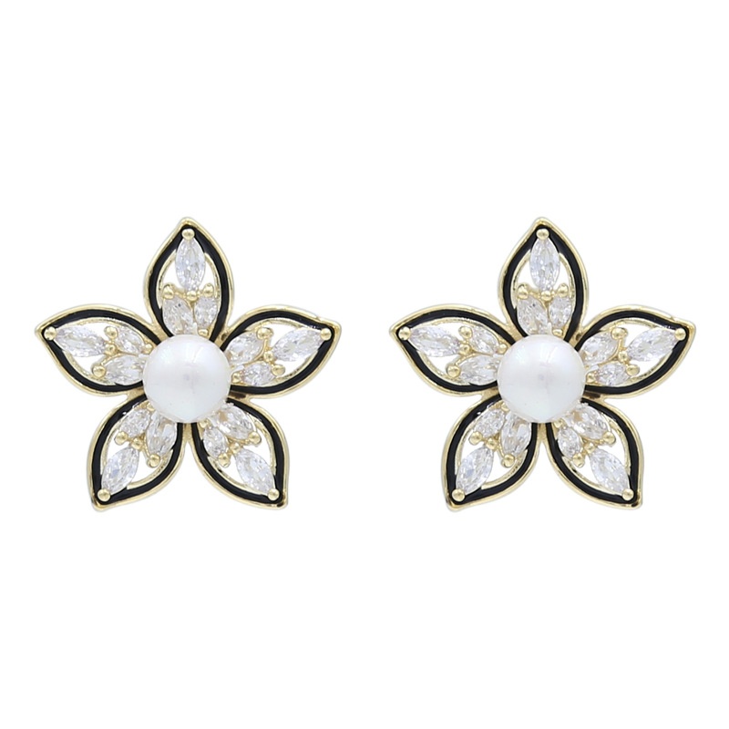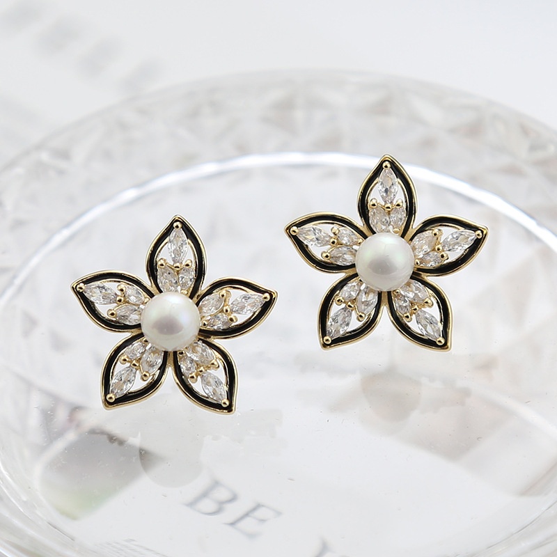 Silver Needle Inlaid Zircon Flower Earrings Fashionable And Elegant Temperament Earrings High-end Light Luxury Exquisite Versatile Earrings