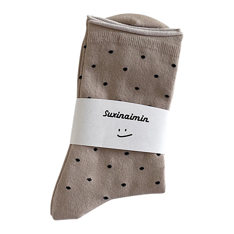 Cute Socks For Women Spring And Summer Sweat-absorbenty Cream Curled Dot Mid-tube Socks Literary Confinement Socks