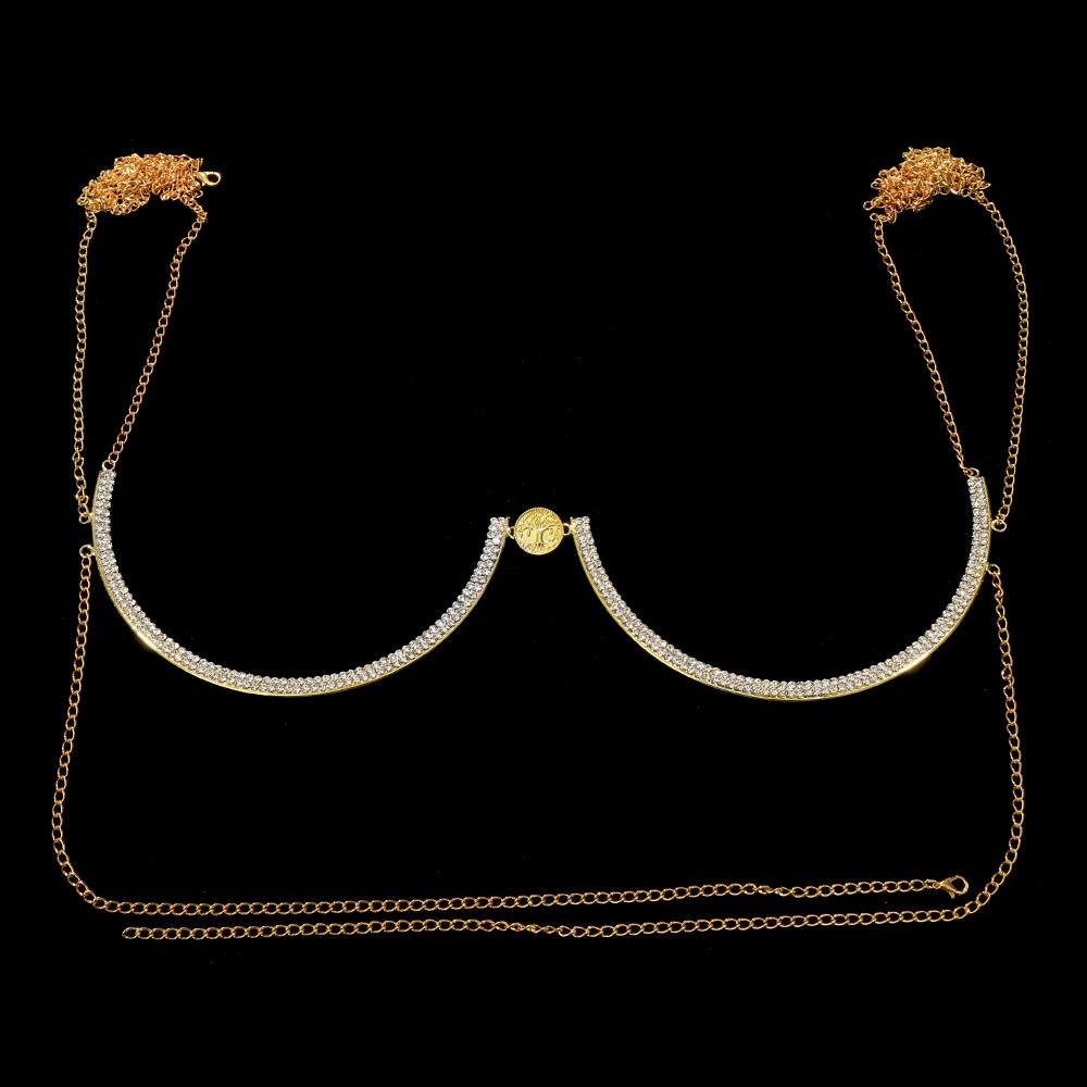 European And American Fashion Accessories Simple And Versatile Full Diamond Chest Chain Personality Net Celebrity Sexy Body Chain Female Body Chain