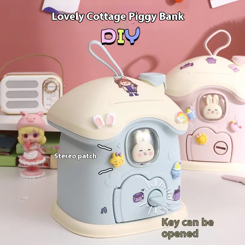 High-value Small House Children's Piggy Bank Can Be Stored And Retrieved Large Capacity Piggy Bank With Lock Girls DIYPiggy Bank