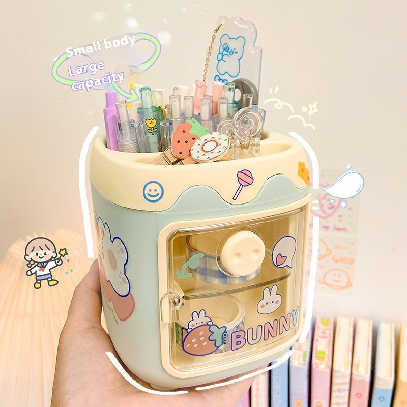 Creative Multi-grid Piggy Pen Holder Cute Girly Pen Holder Student Stationery Pencil Case Desktop Multi-function Storage Bucket