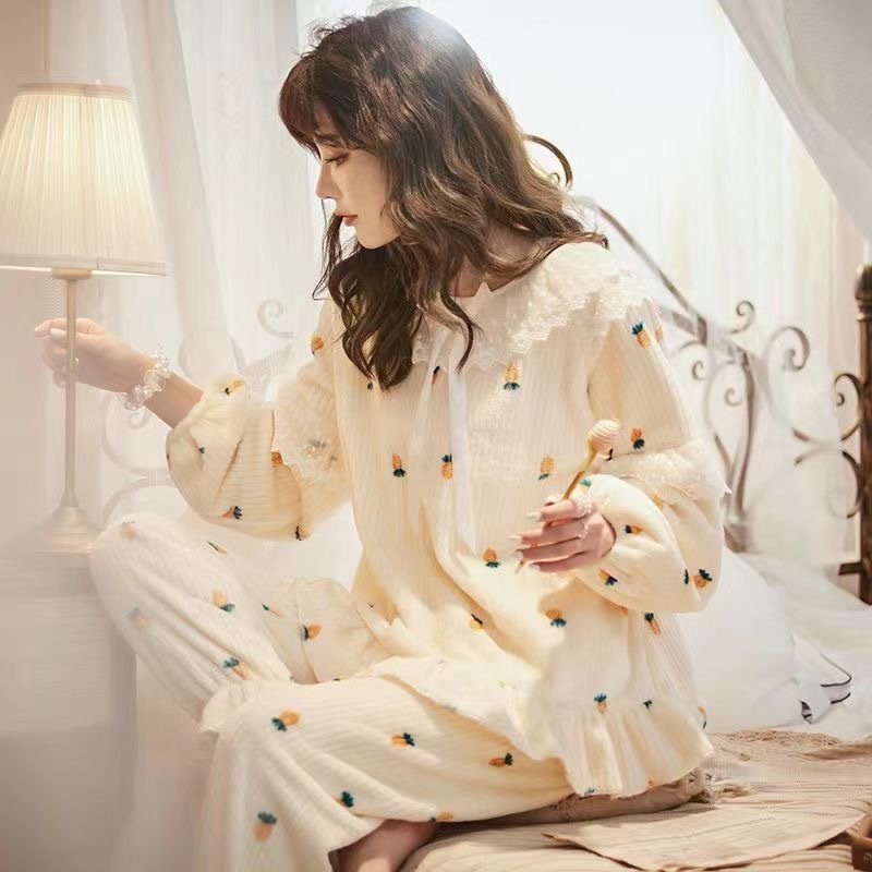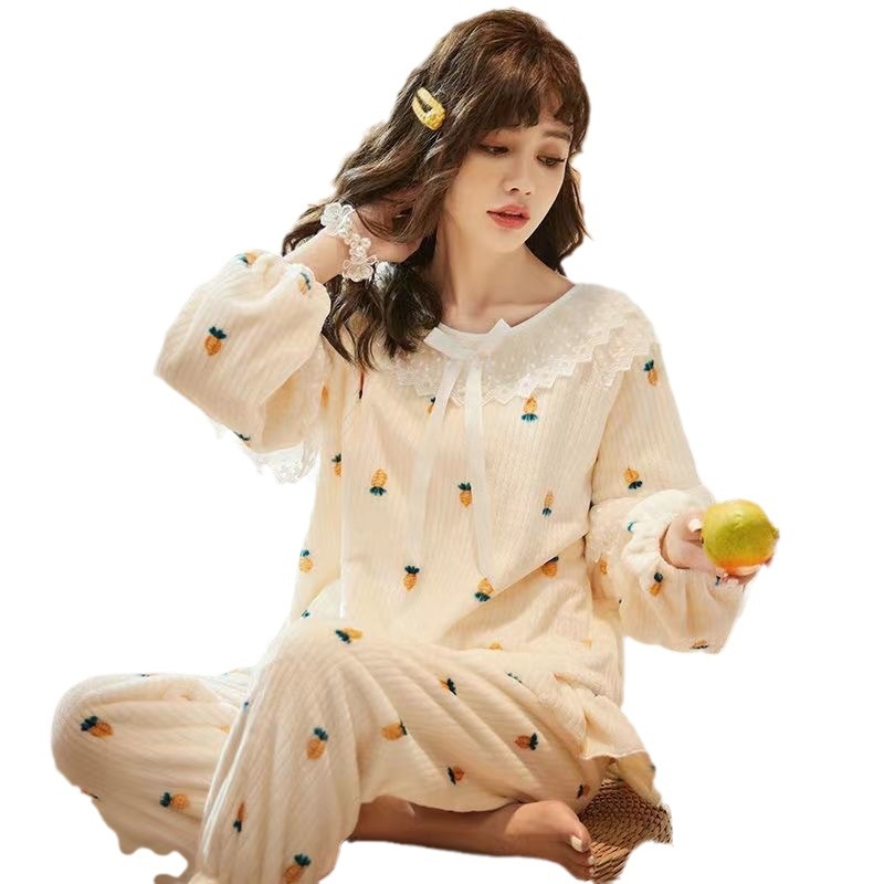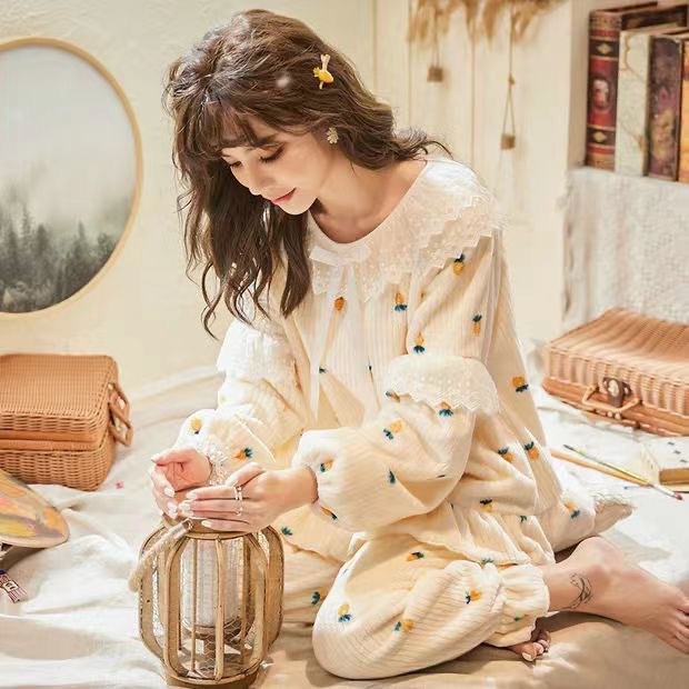 Princess Style Flannel Pajamas Women's Autumn And Winter Thickened Sweet Dormitory Suit Home Clothes High-end Pajamas