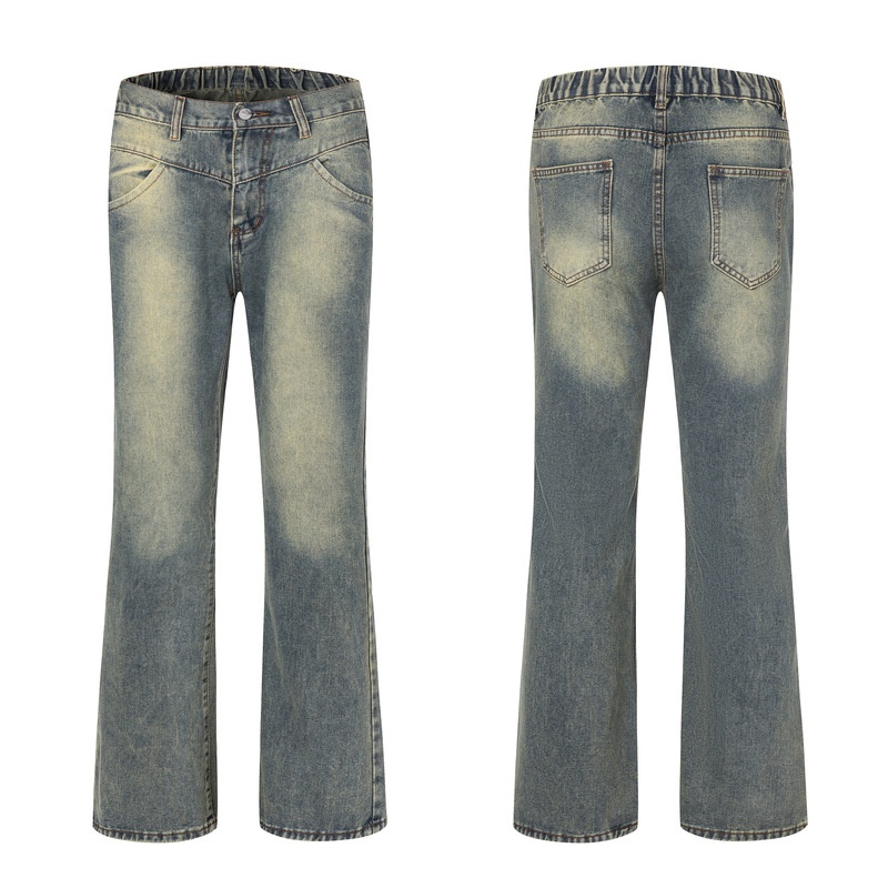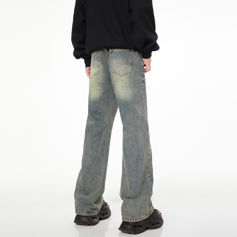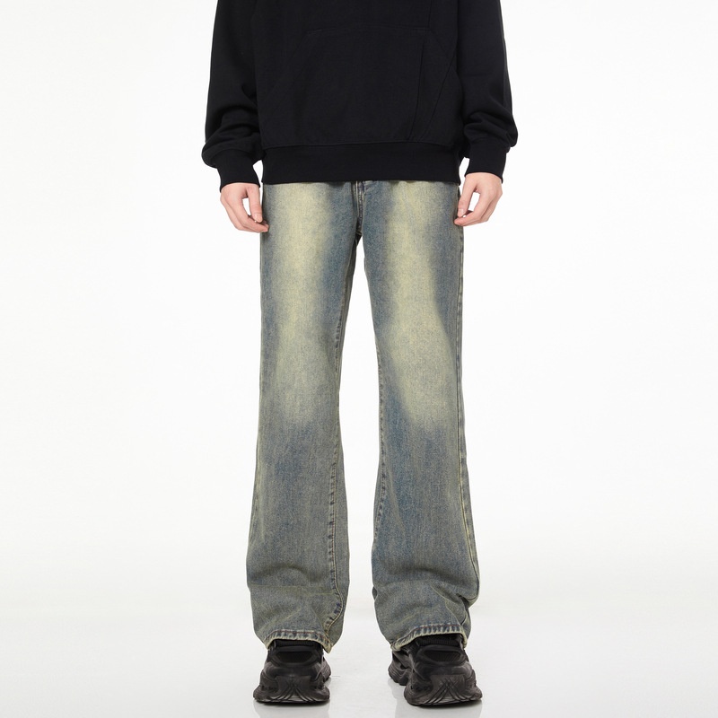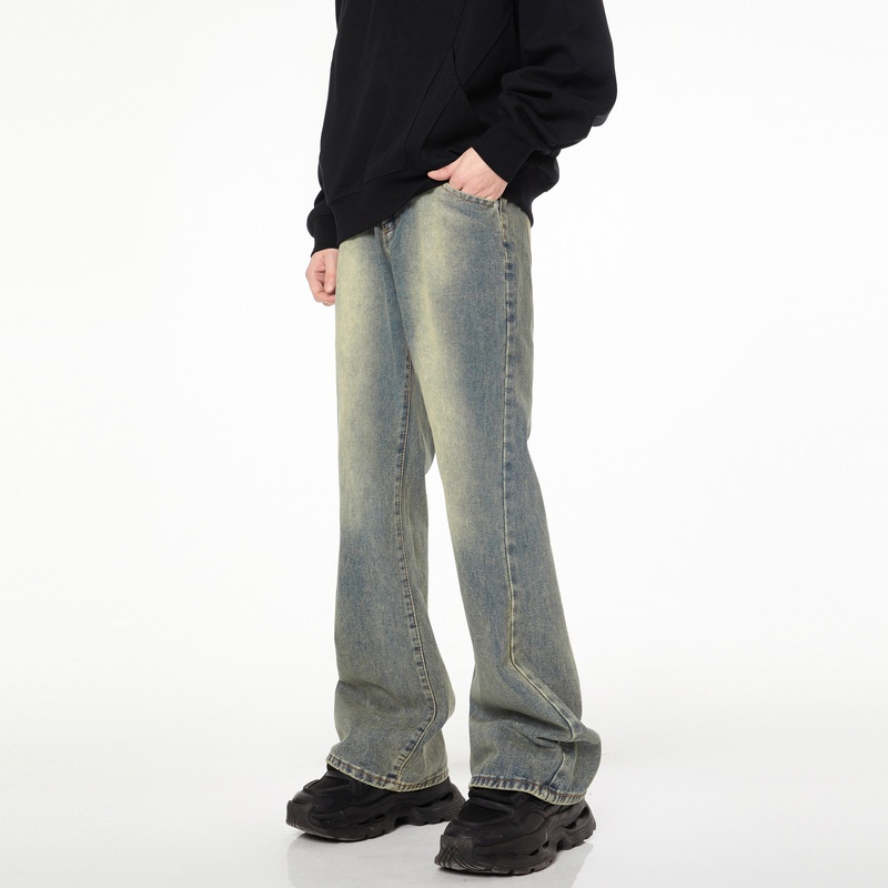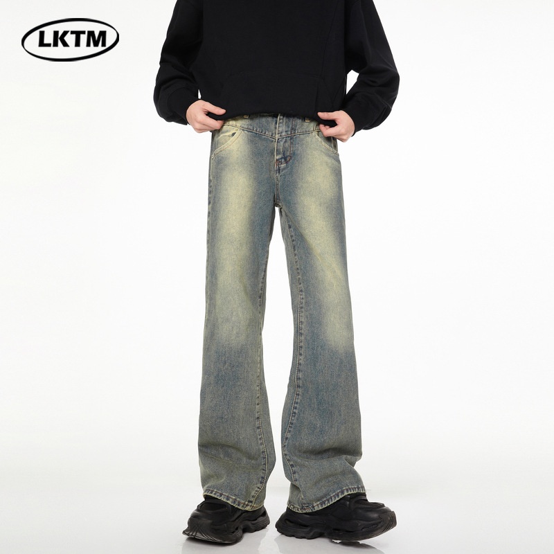 LKTMMen's Clothing#American High Street Washed Distressed Flared Jeans Men's Vibey Casual Mopping Long Pants
