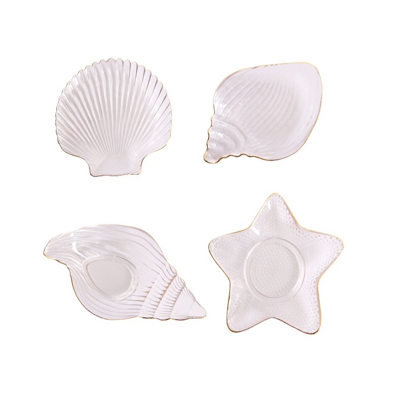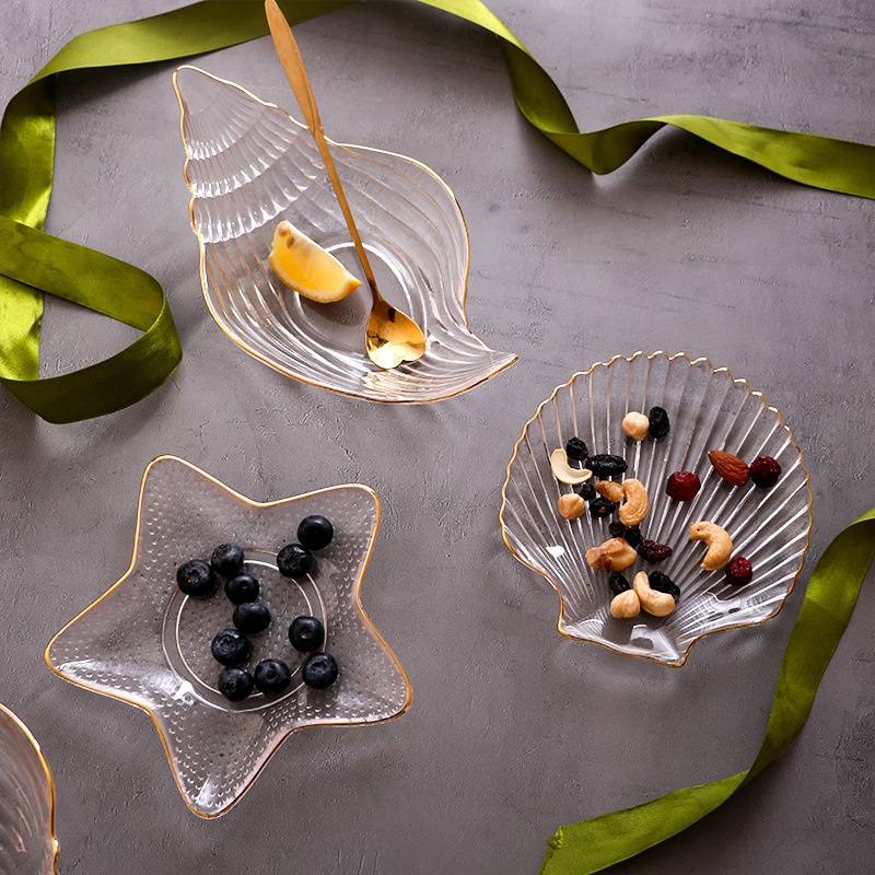 Creative Gold-rimmed Transparent Glass Plate Ocean Series Plate Bowl Tableware Set Fruit Plate Snack Dessert Cake Plate