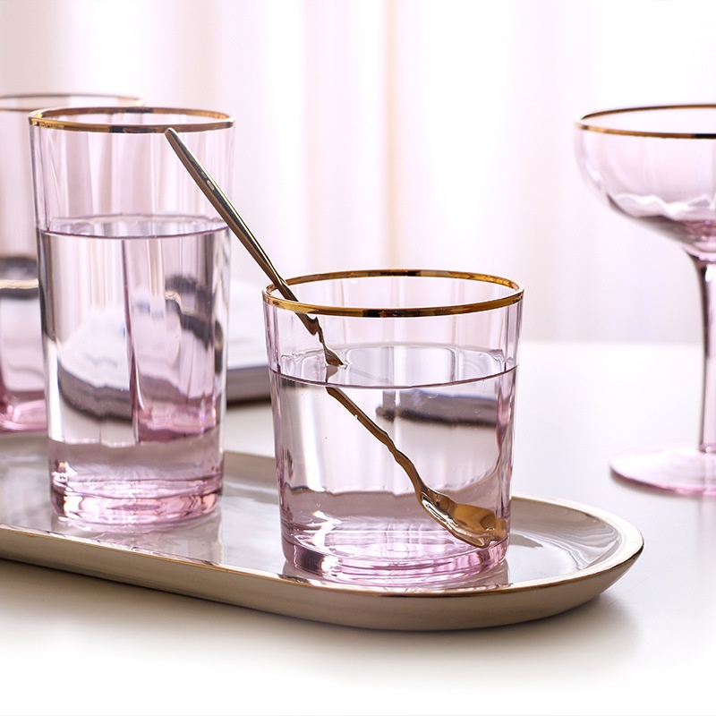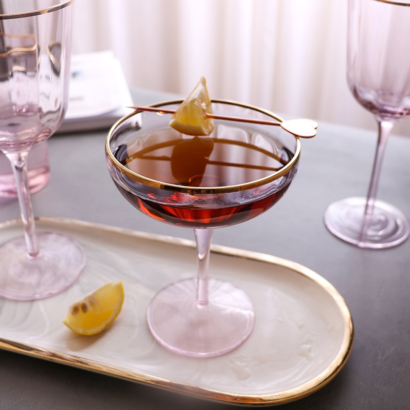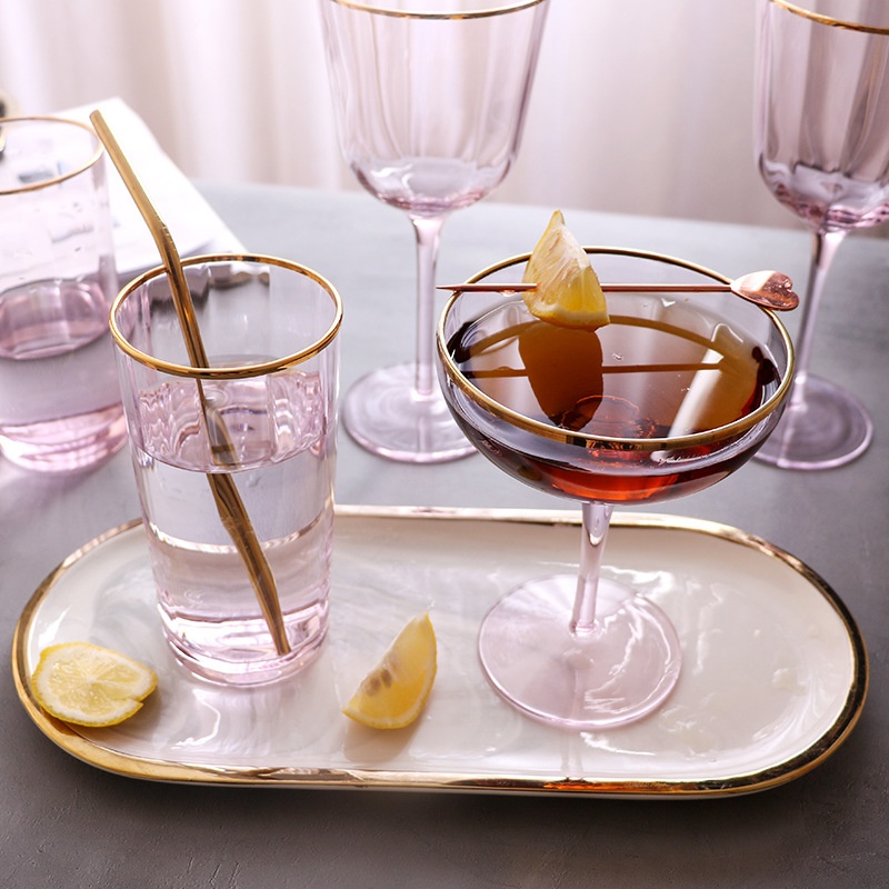Creative Home Pink Gold-rimmed Cocktail Glass Wine Set Highball Red Wine Glass Juice Cup Glass Water Cup