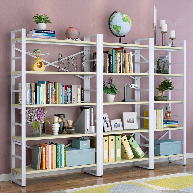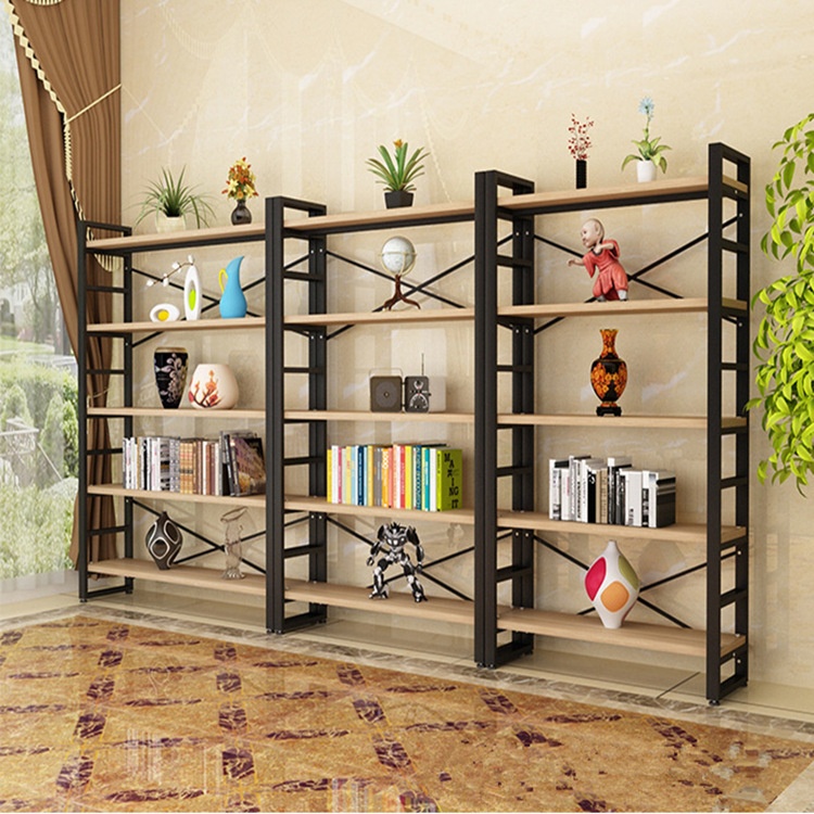 Modern Simple Steel Wood Shelves Children's Bookshelf Simple Living Room Storage Rack Floor Display Rack