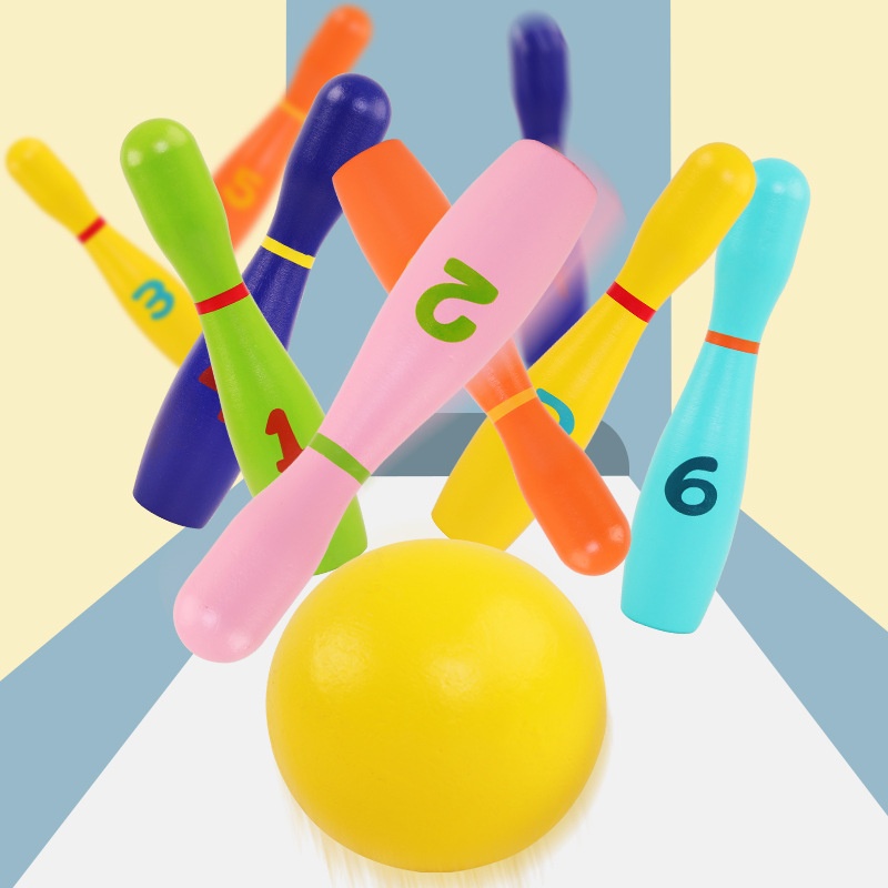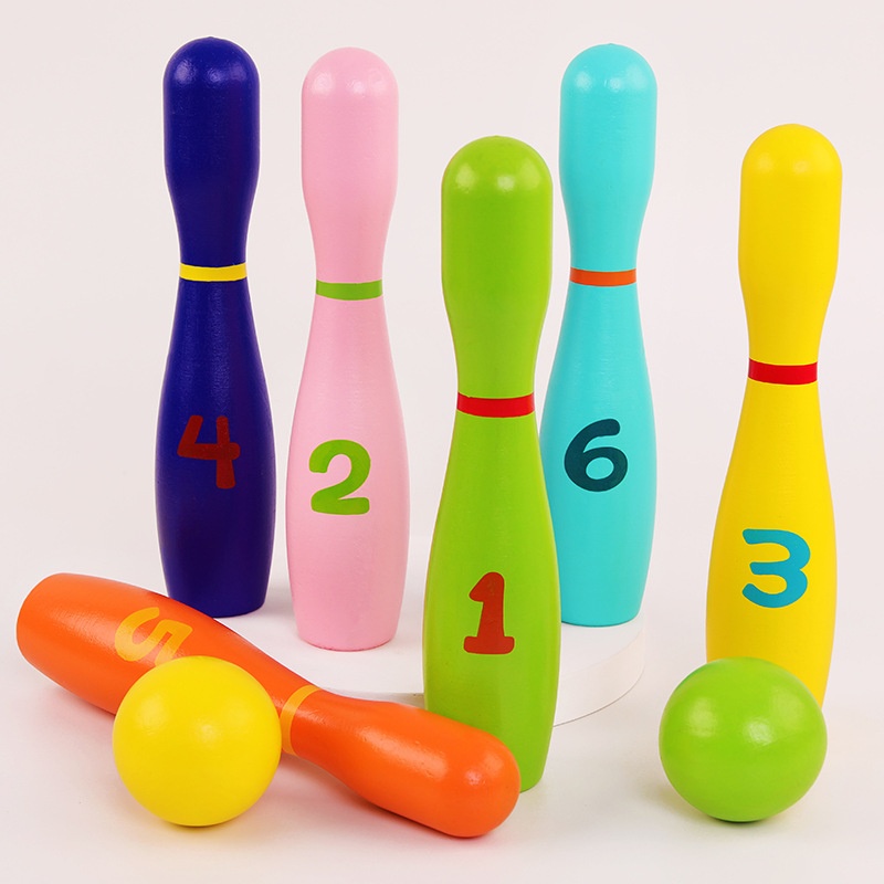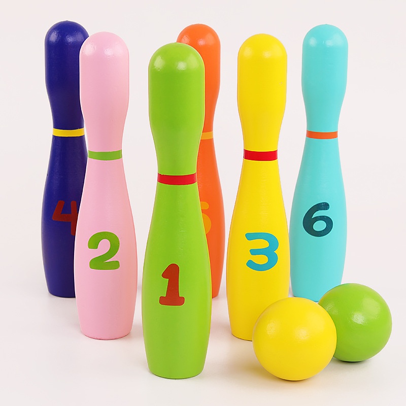 Wooden Teaching Aids Children's Bowling Toys1-6-8 Years Old Kindergarten Baby Ball Outdoor Parent-child Sports