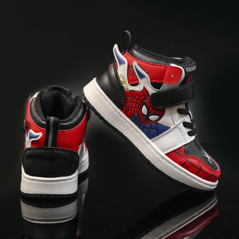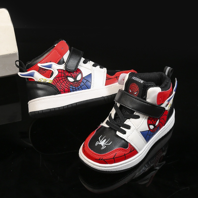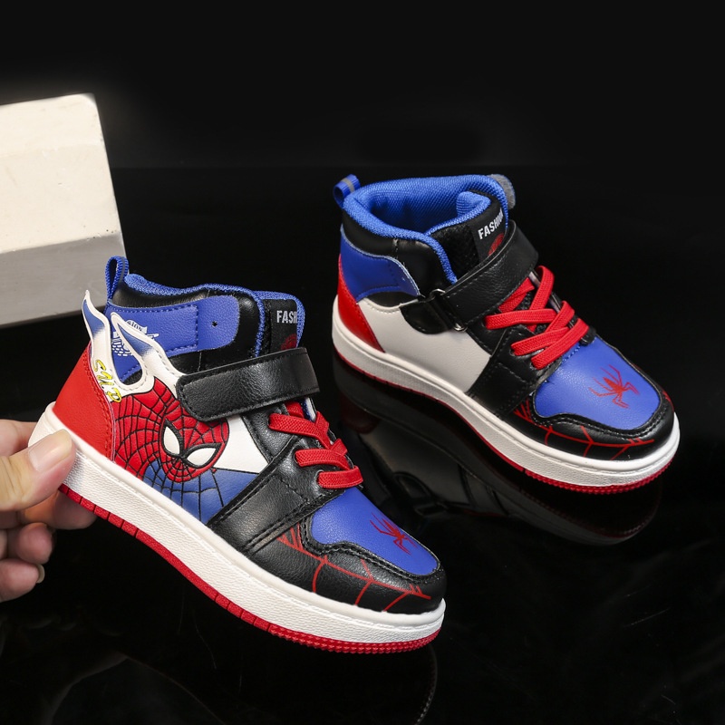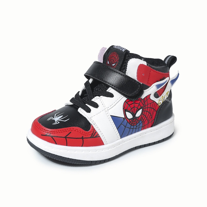 Children's Sneakers Contrast Color AJBoys Leather Casual Shoes Mid-cut Velcro Cartoon Color Matching Children's Non-slip Basketball Shoes