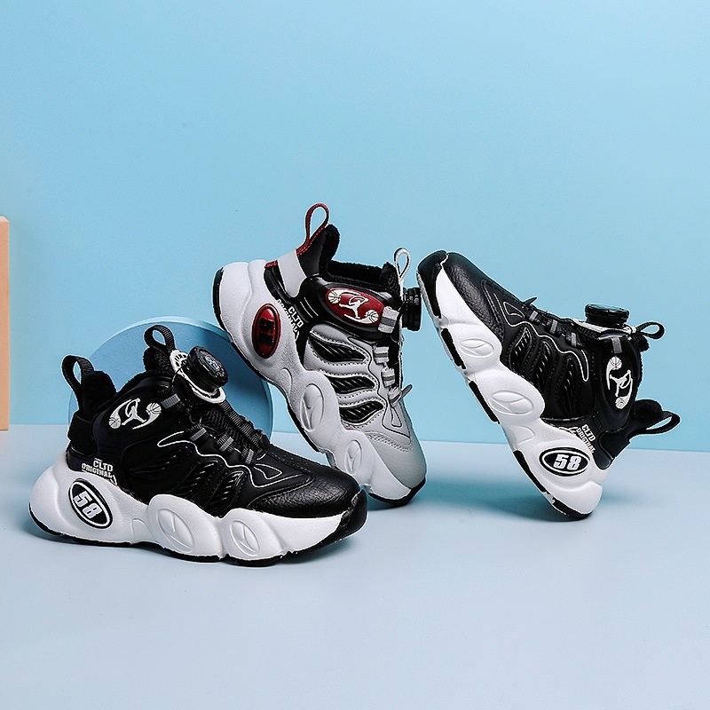 Boys Basketball Shoes Autumn And Winter Warm Mid-high Top Plus Velvet Sports Shoes Ultra-light EVACasual Shoes