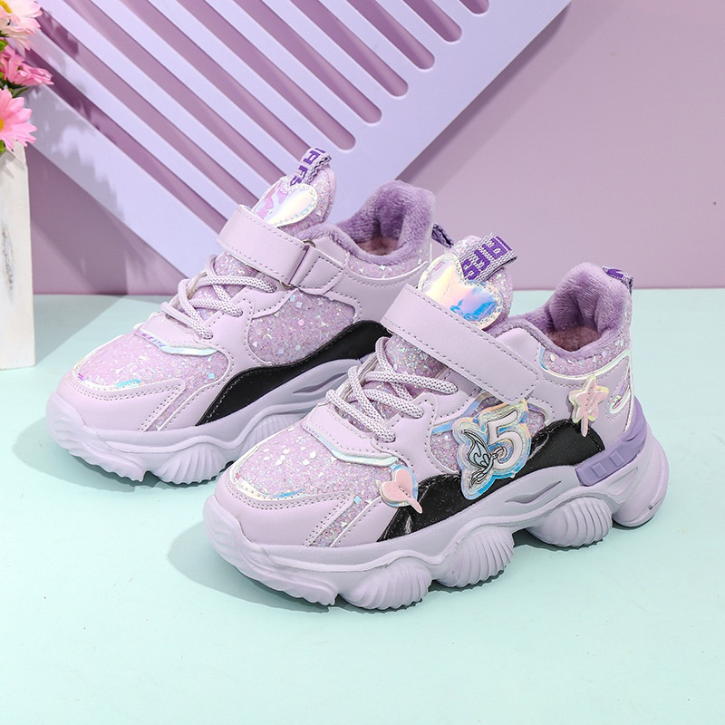 Girls Shoes Cotton Shoes Winter Children Girls Cotton Plus Velvet Warm Sports Shoes For Middle And Large Children Dad Shoes