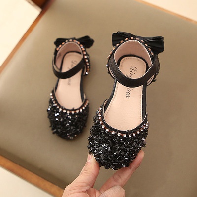 Girls Sandals Little Princess Shoes Rhinestone Leather Shoes Spring Children's Performance Shoes Baby Crystal Shoes Half Sandals