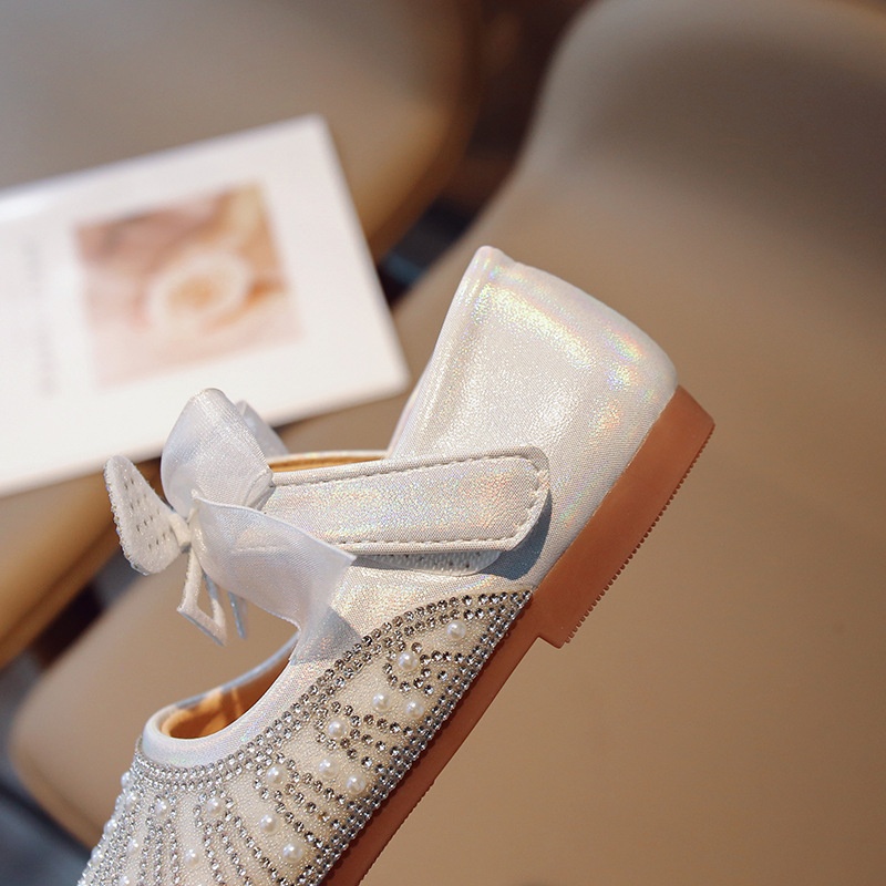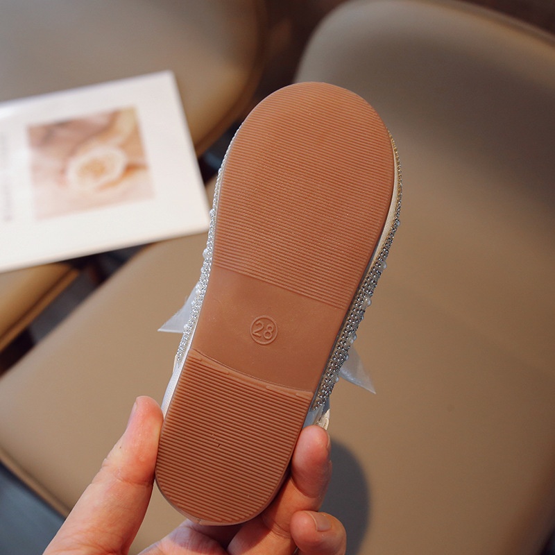 Children's Rhinestone Princess Shoes Spring And Autumn Girls Fashion Korean Version Small Leather Shoes Soft Sole Baby Girl Single Shoes One Piece Dery